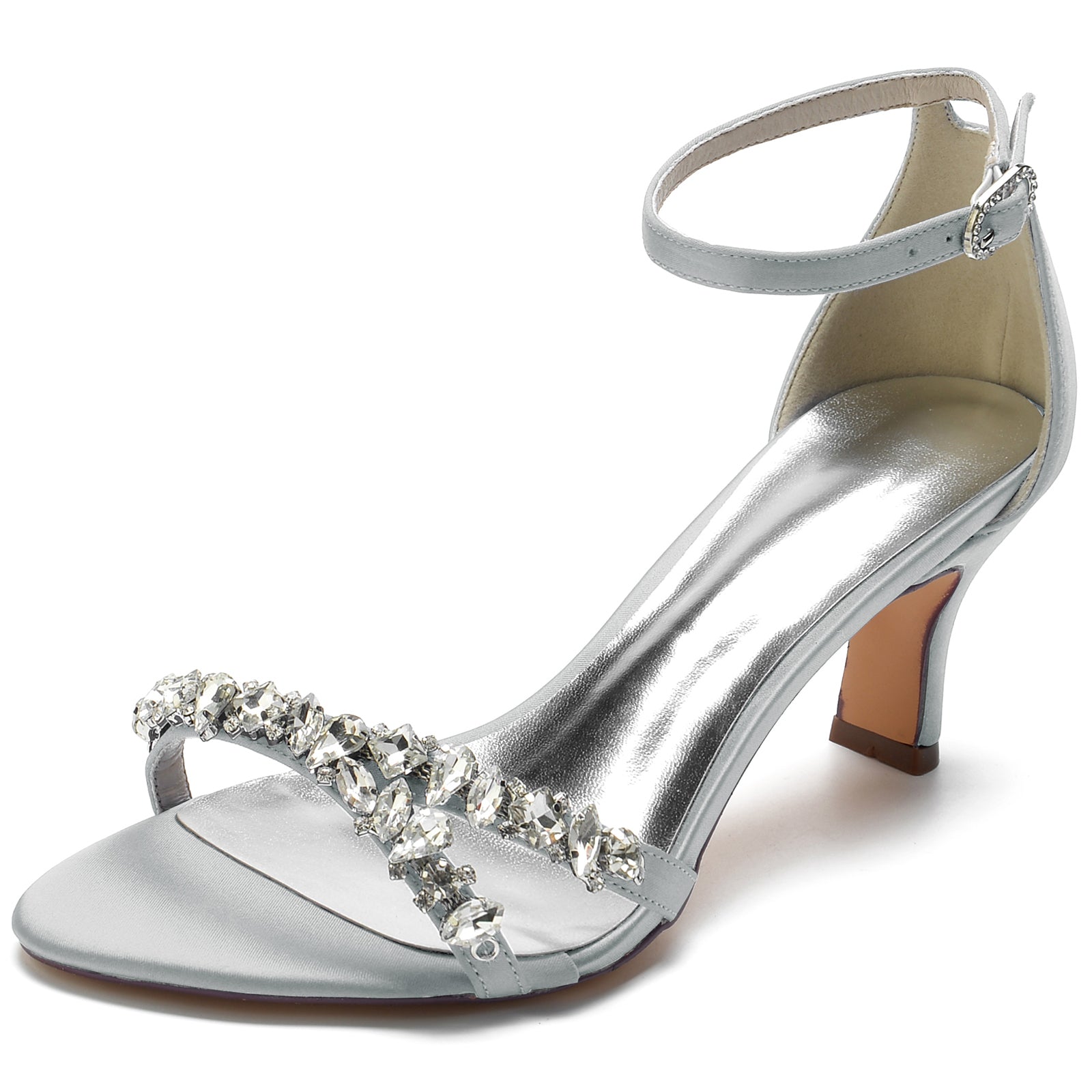 #SH36861X16 Women's Silk Satin With Ankle Strap Peep Toe Spool Heel Rhinestone Party Shoes