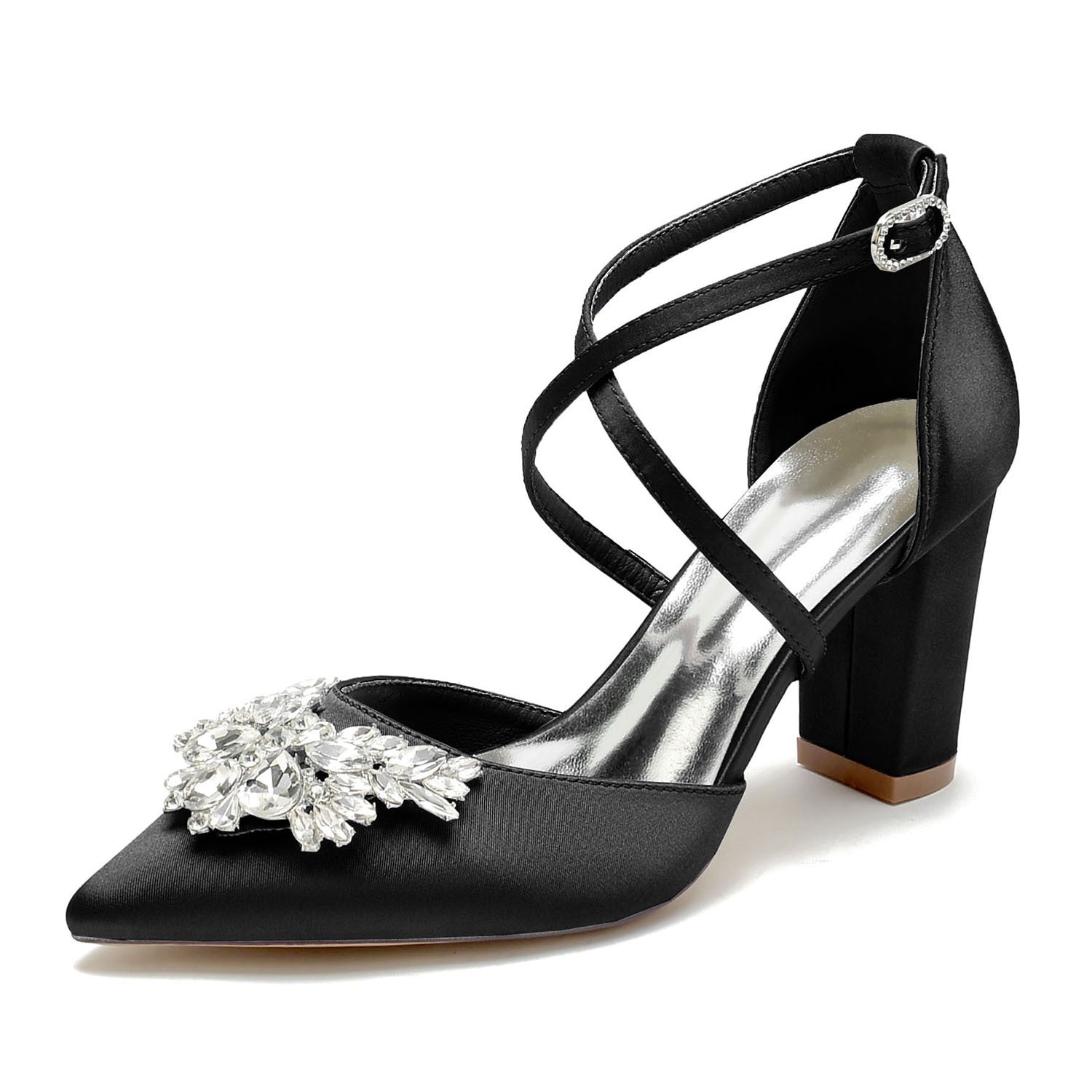 #SH22014X59F Women's Silk Satin With Ankle Strap Rhinestone Closed Toe Chunky Heel Party Shoes