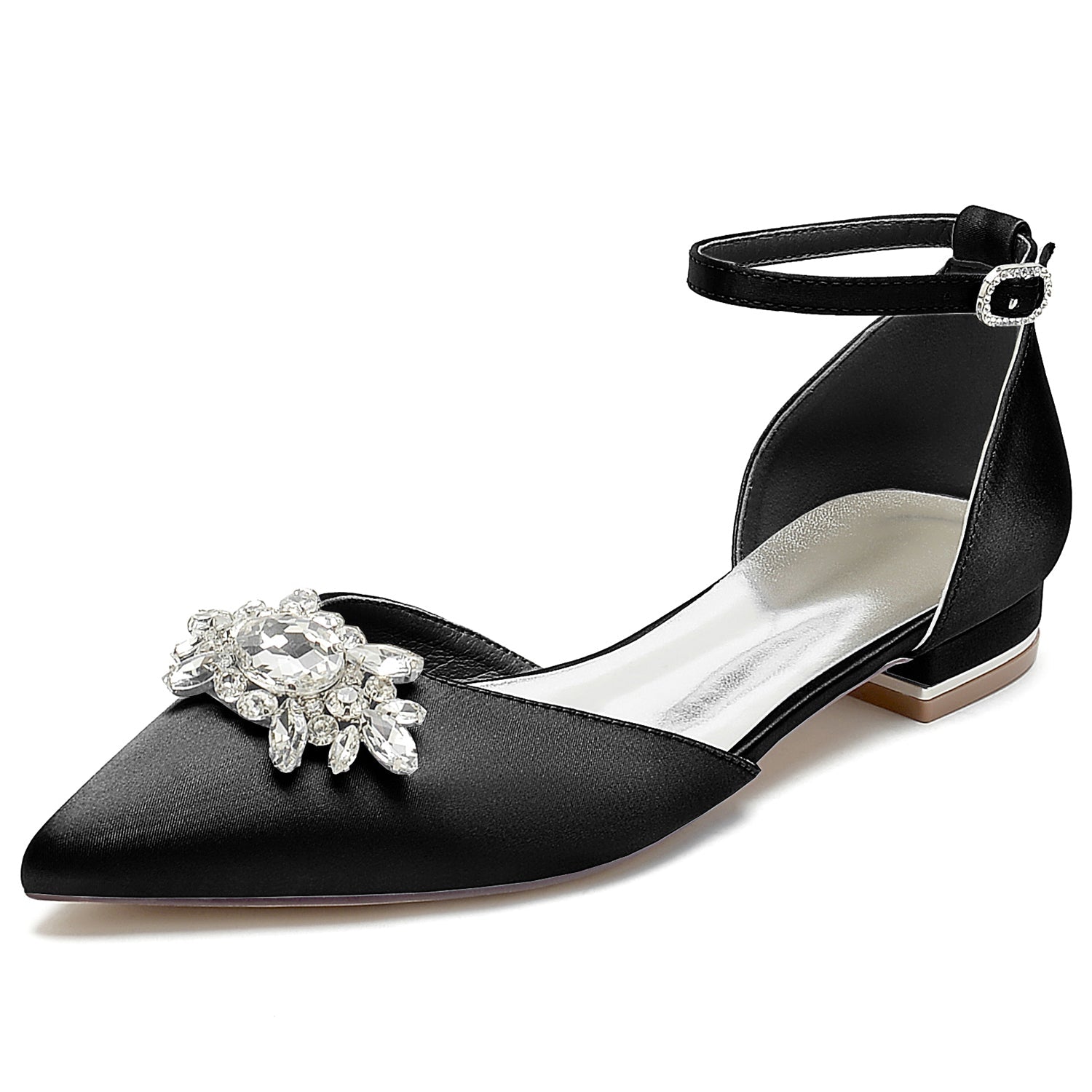 #SH18448X46TY Women's Silk Satin With Ankle Strap Rhinestone Closed Toe Flat Heel Wedding Shoes