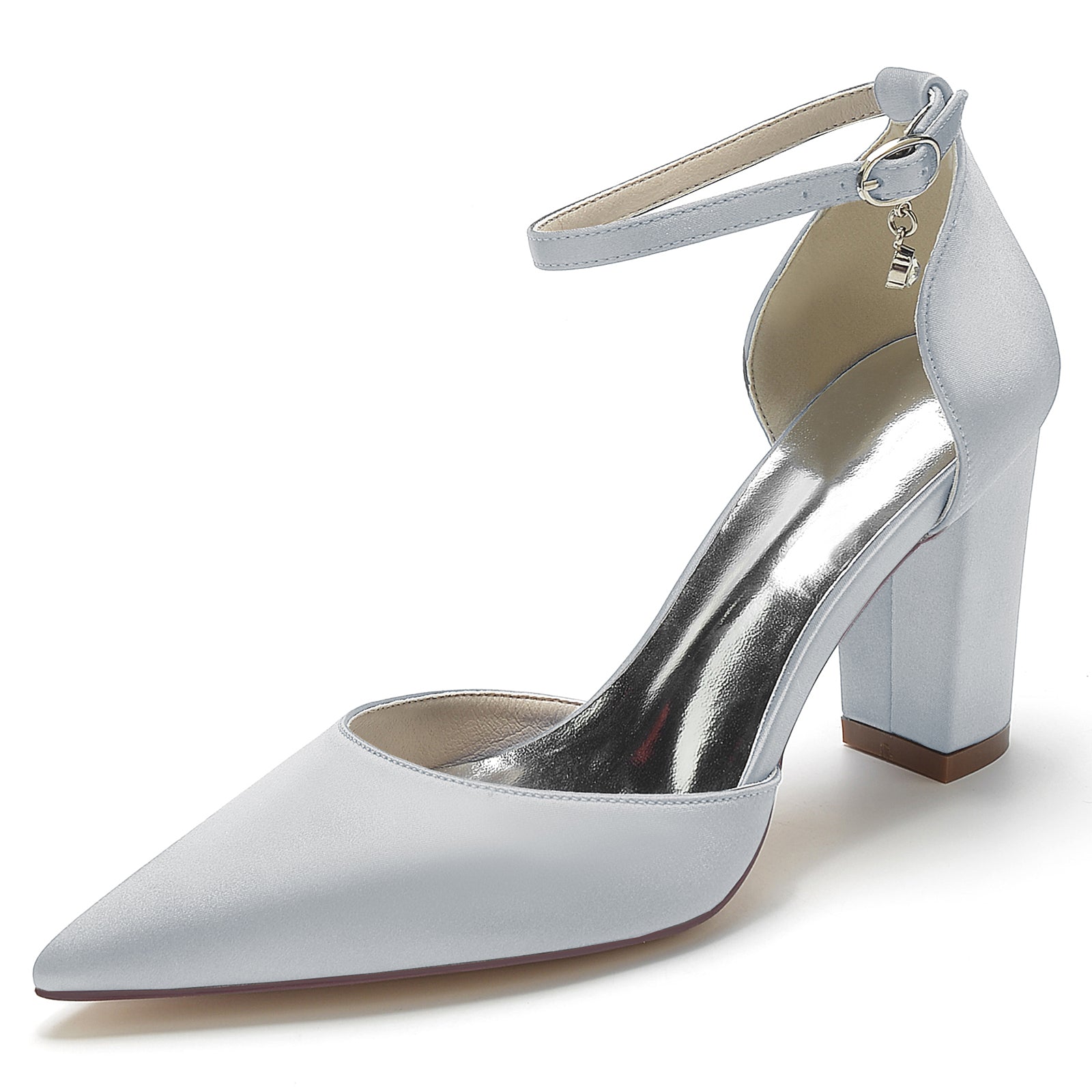 #SH22014X15 Women's Silk Satin With Closed Toe Ankle Strap Chunky Heel Wedding Shoes