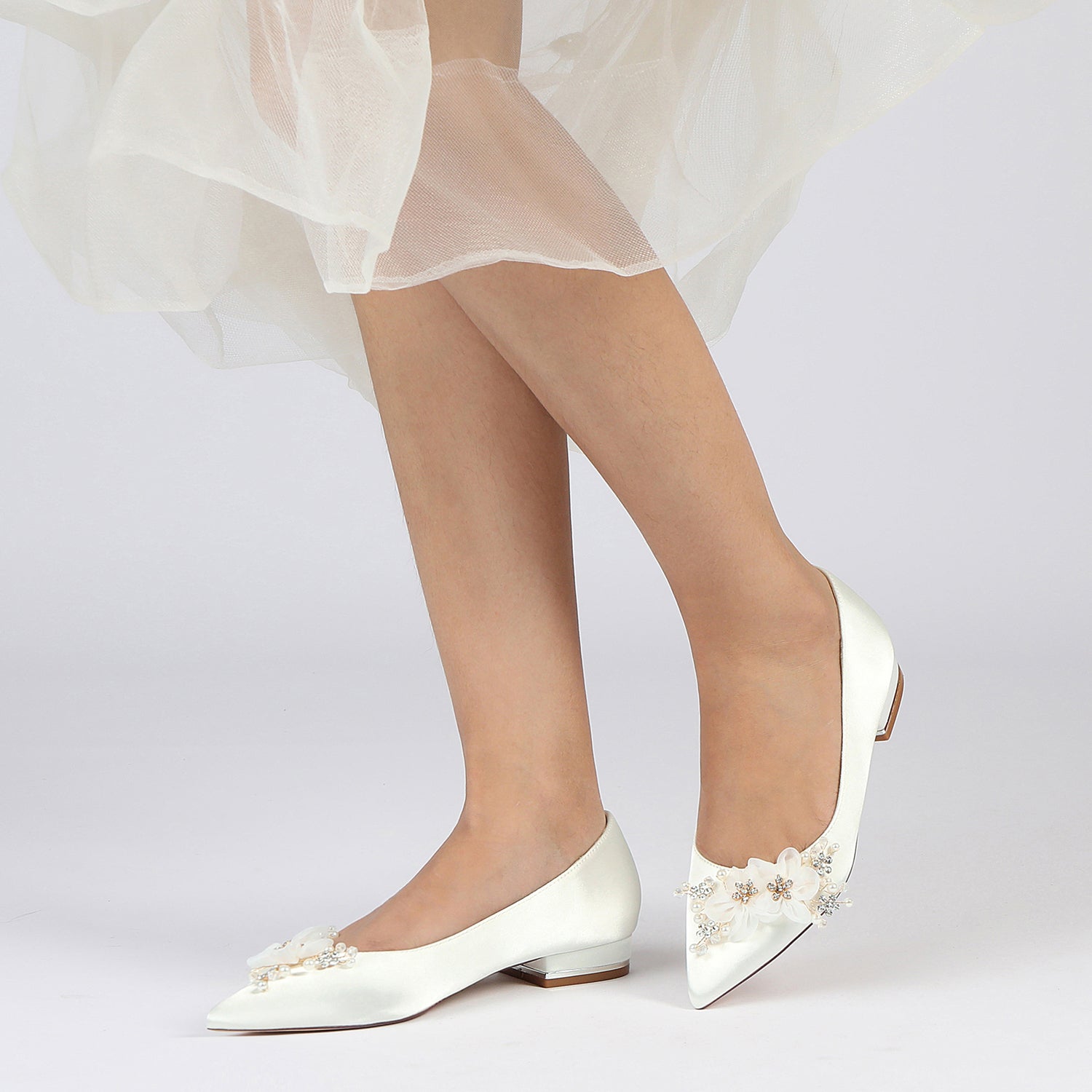 • Women's Silk Satin With Flower Closed Toe Flat Heel Party Shoes