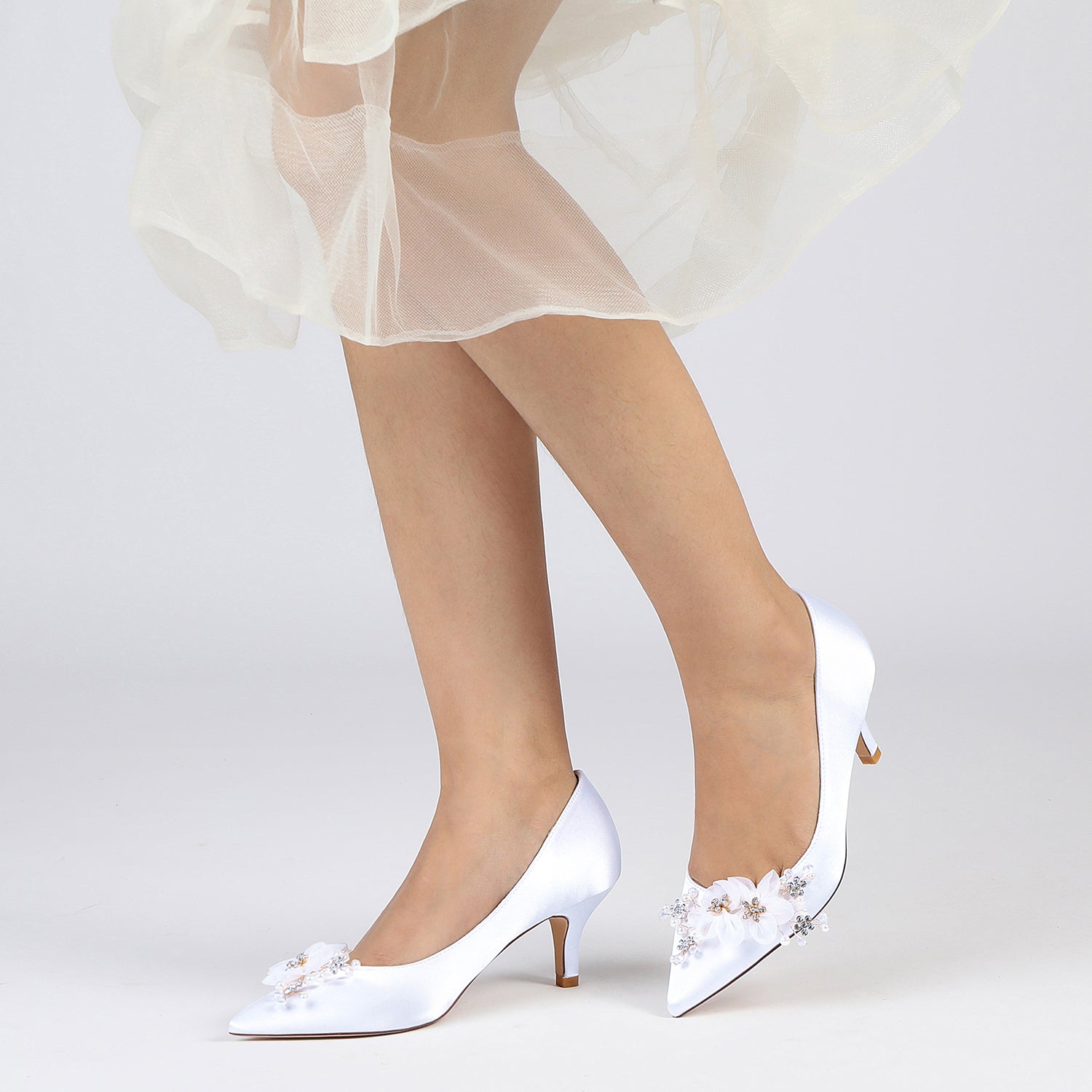 #SH6869X1S Women's Silk Satin With Flower Closed Toe Stiletto Heel Evening Shoes