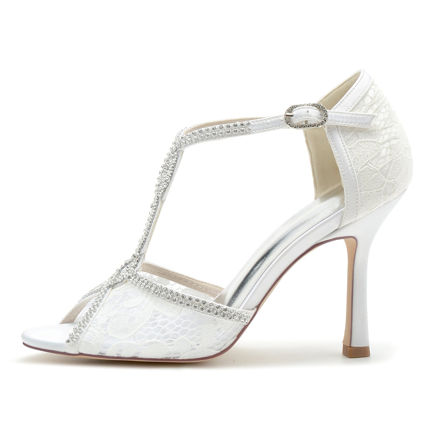 • Women's Silk Satin With Peep Toe Ankle Strap Rhinestone Stiletto Heel Party Shoes