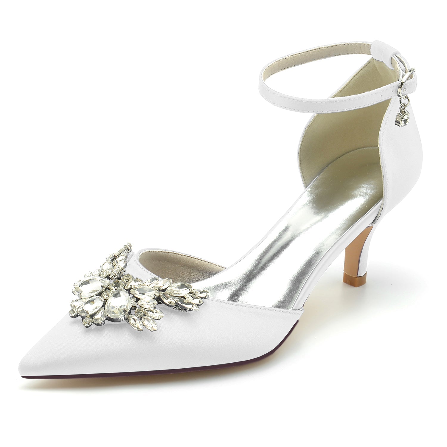 #SH6869X15A Women's Silk Satin With Rhinestone Ankle Strap Closed Toe Stiletto Heel Wedding Shoes