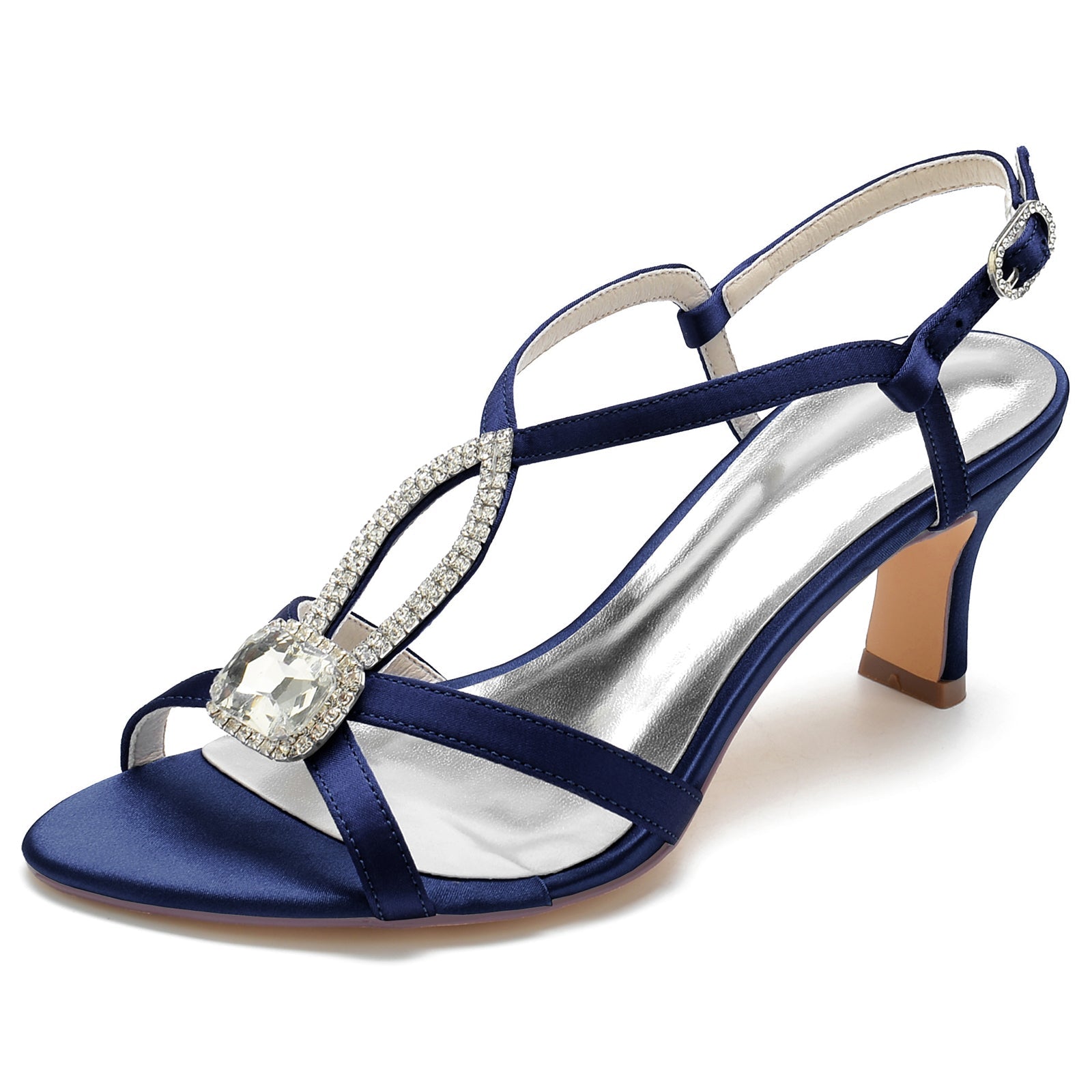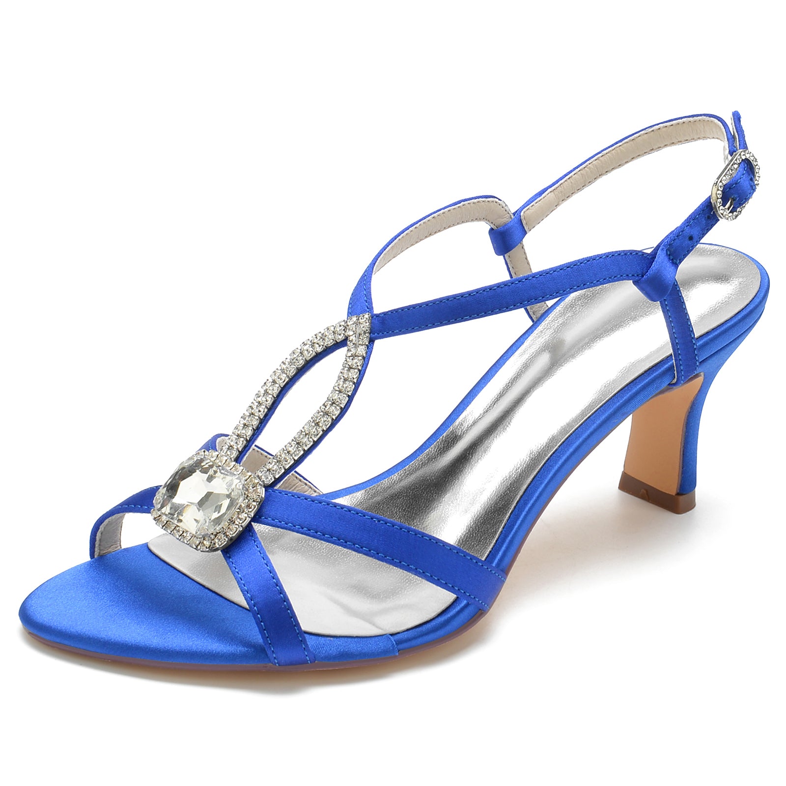 #SH36861X23 Women's Silk Satin With Rhinestone Ankle Strap Peep Toe Spool Heel Wedding Shoes