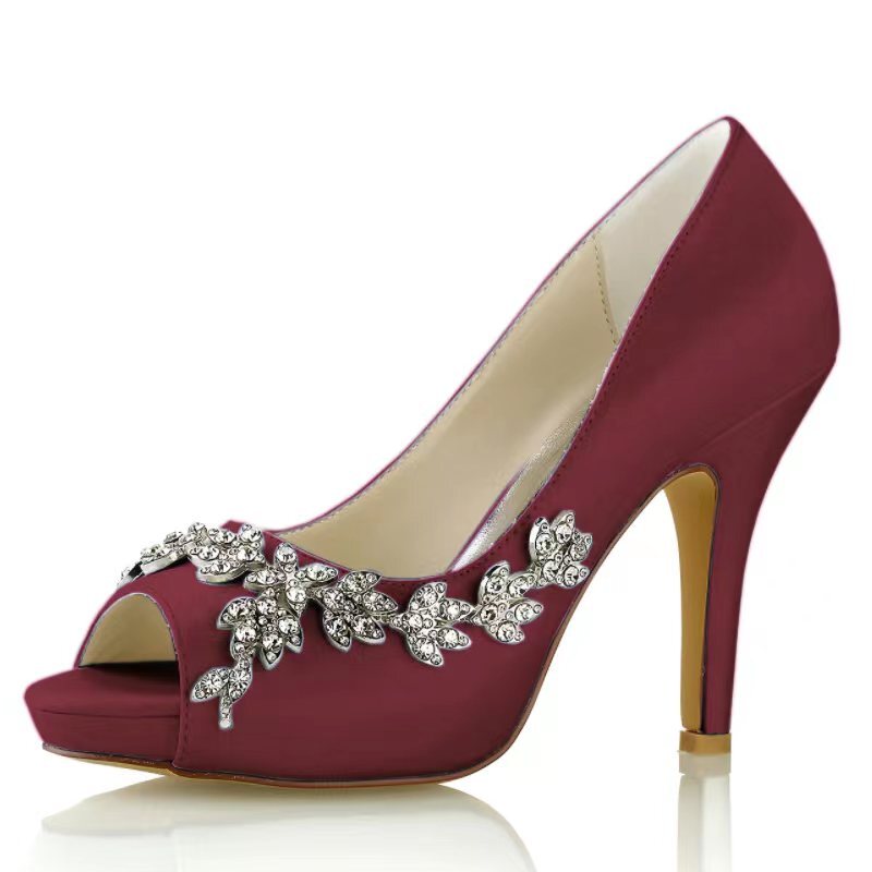 #SH718X66 Women's Silk Satin With Rhinestone Peep Toe Stiletto Heel Evening Shoes
