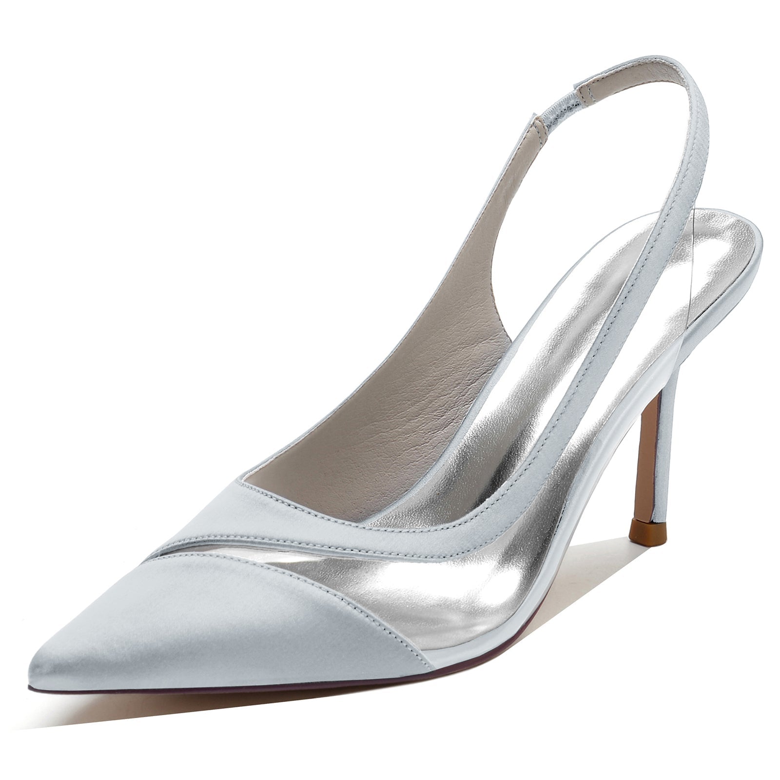 #SH1962X53 Women's Silk Satin With Stiletto Heel Closed Toe Wedding Shoes