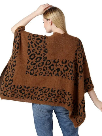 Women's Warm V-Neck Stylish Knitted Plush Fringed Shawl Cape