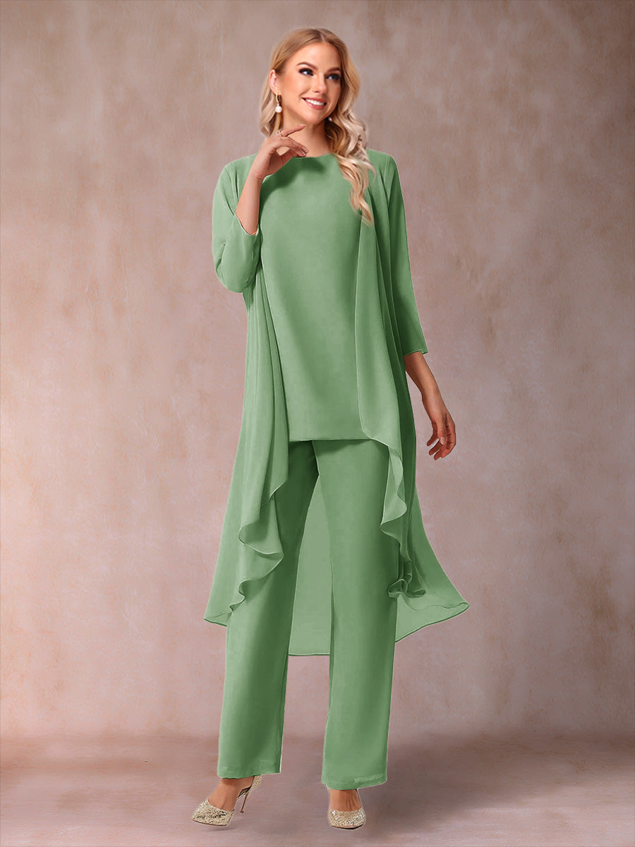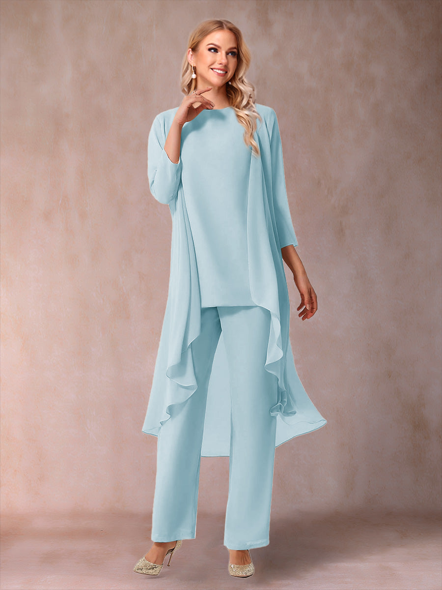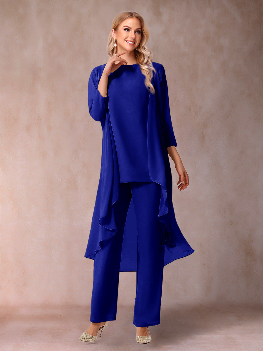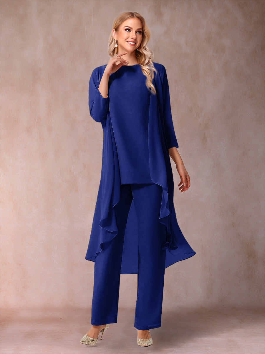 • Chiffon Scoop 3/4 Sleeves 3 Pieces Pantsuits with Ruched & Jacket