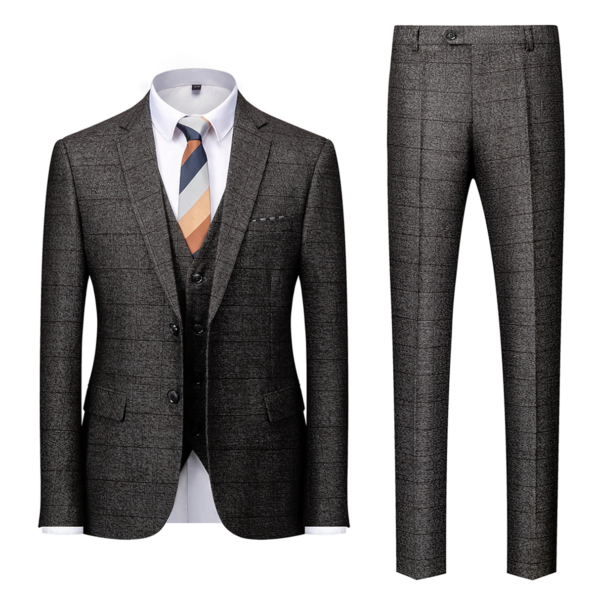 #Gordon 5566054 Tailored Fit Single Breasted Two-buttons 3 Pieces Plaid Men's Wedding Suits
