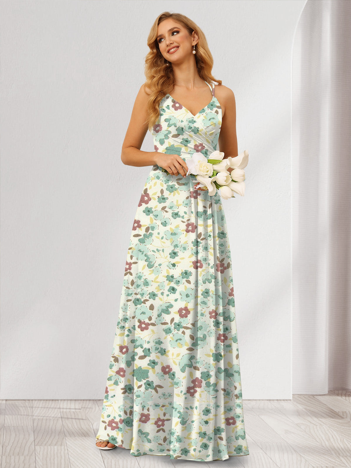 #Morrison 99091046A1 A-Line/Princess Halter Sleeveless Ruched Floral Bridesmaid Dresses