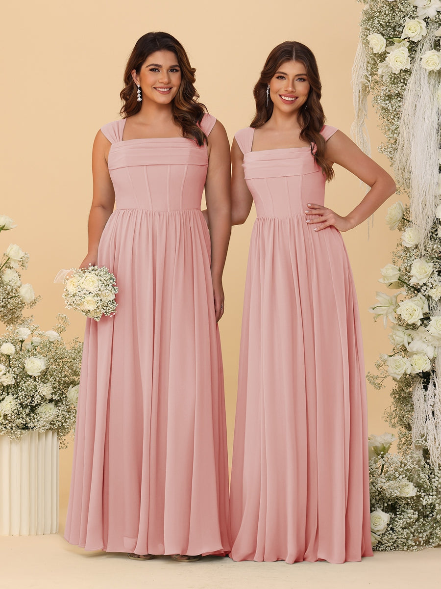 #Marsh 99122122 Chiffon A-Line/Princess Square Neck Sleeveless Bridesmaid Dresses with Pleats