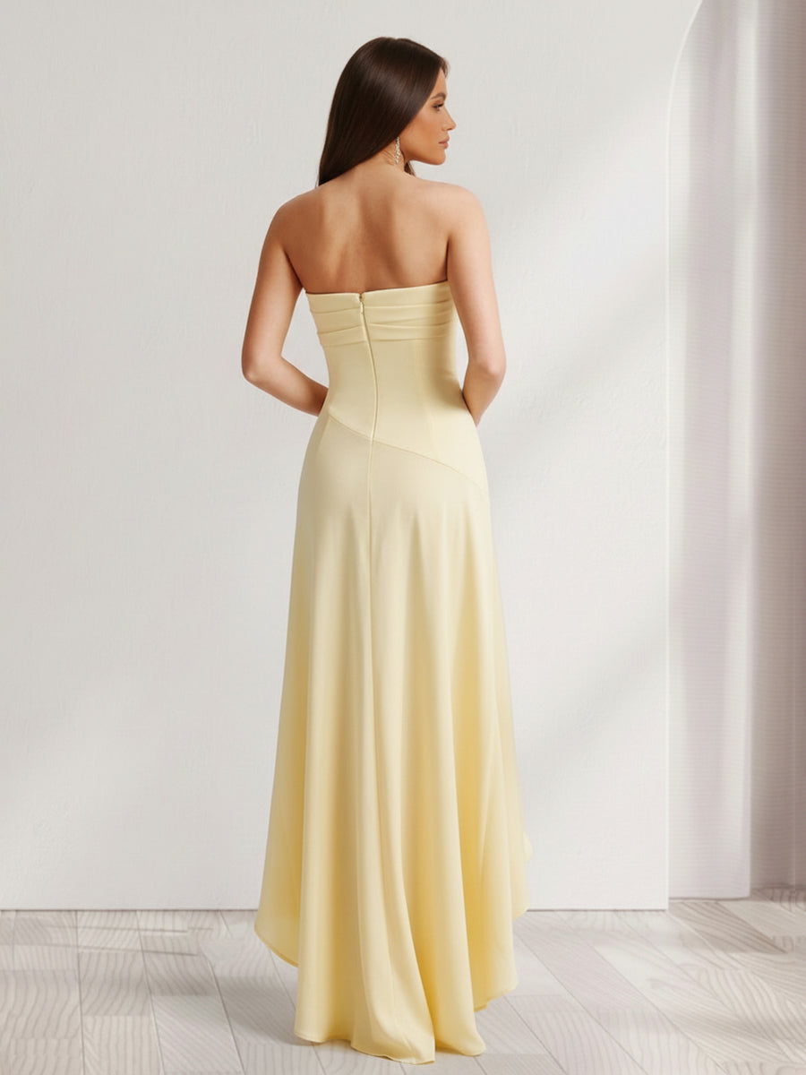 #Boyle E12010949 Sheath/Column Strapless Asymmetrical Bridesmaid Dresses with Split Side & Ruffles