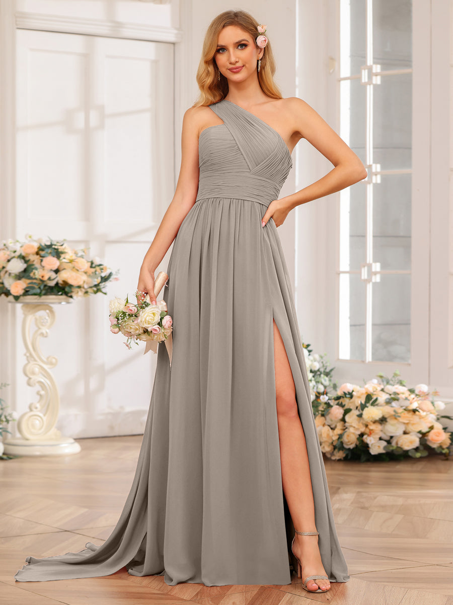 #Veronica 9904554 A-Line/Princess One-Shoulder Long Wedding Party Dresses with Watteau Train