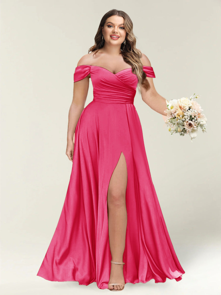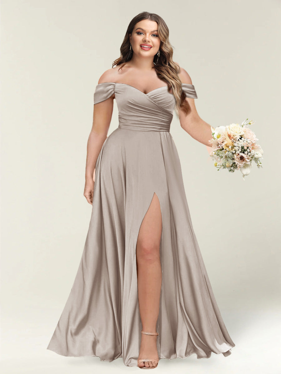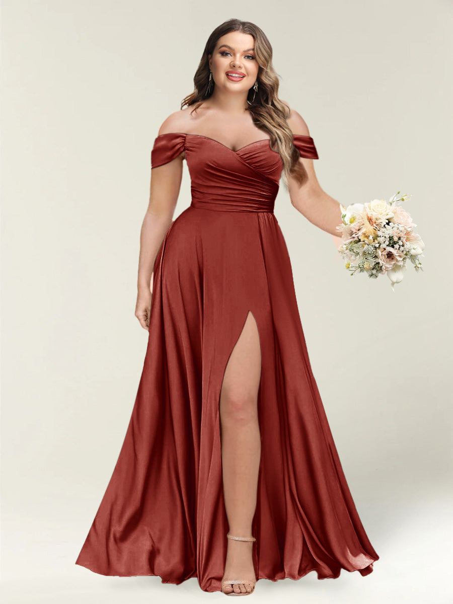 #Kaeln 11010009P A-Line/Princess One-Shoulder Sleeveless Long Plus Size Bridesmaid Dresses with Split Side