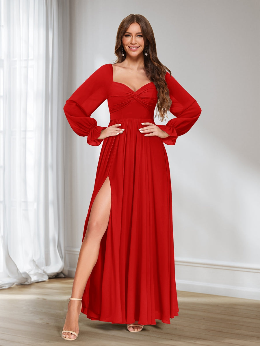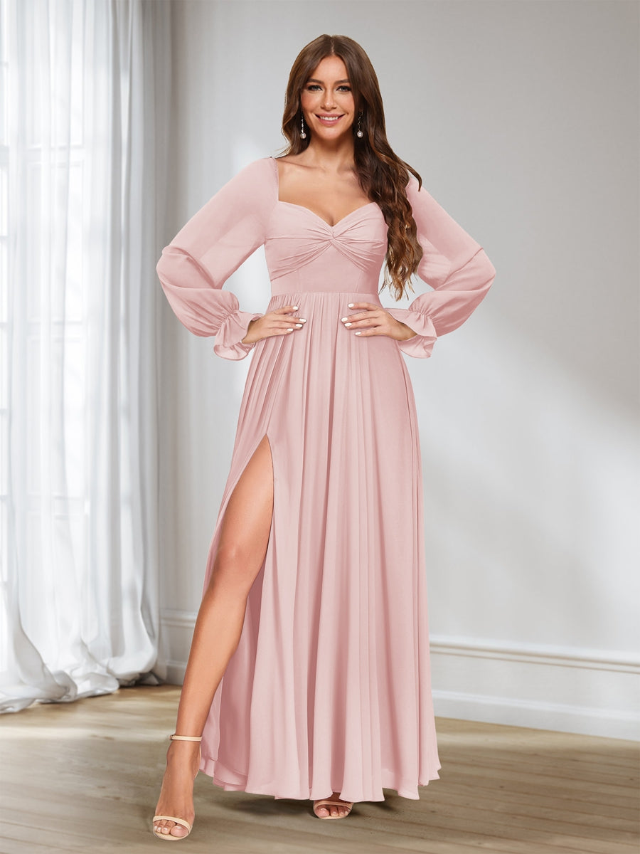 #Blakely C68101 A-Line/Princess Sweetheart Chiffon Long Sleeves Bridesmaid Dresses with Split Side