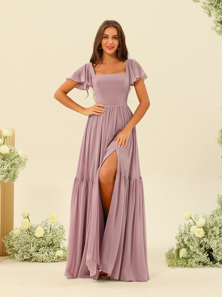 #Maddison 99071941 A-Line/Princess Ruffles Floor-Length Short Sleeves Bridesmaid Dresses