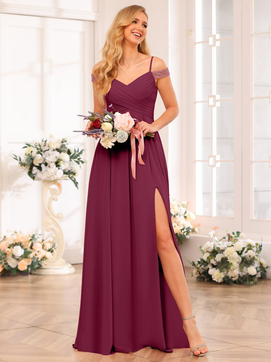 #Annie 9904542 A-Line/Princess Spaghetti Straps Long Wedding Party Dresses with Split Side & Pockets