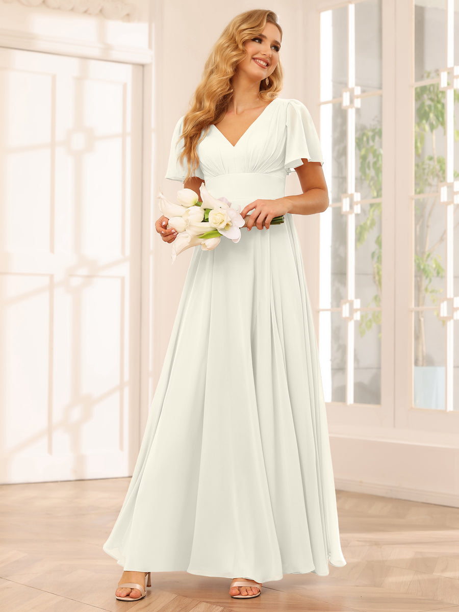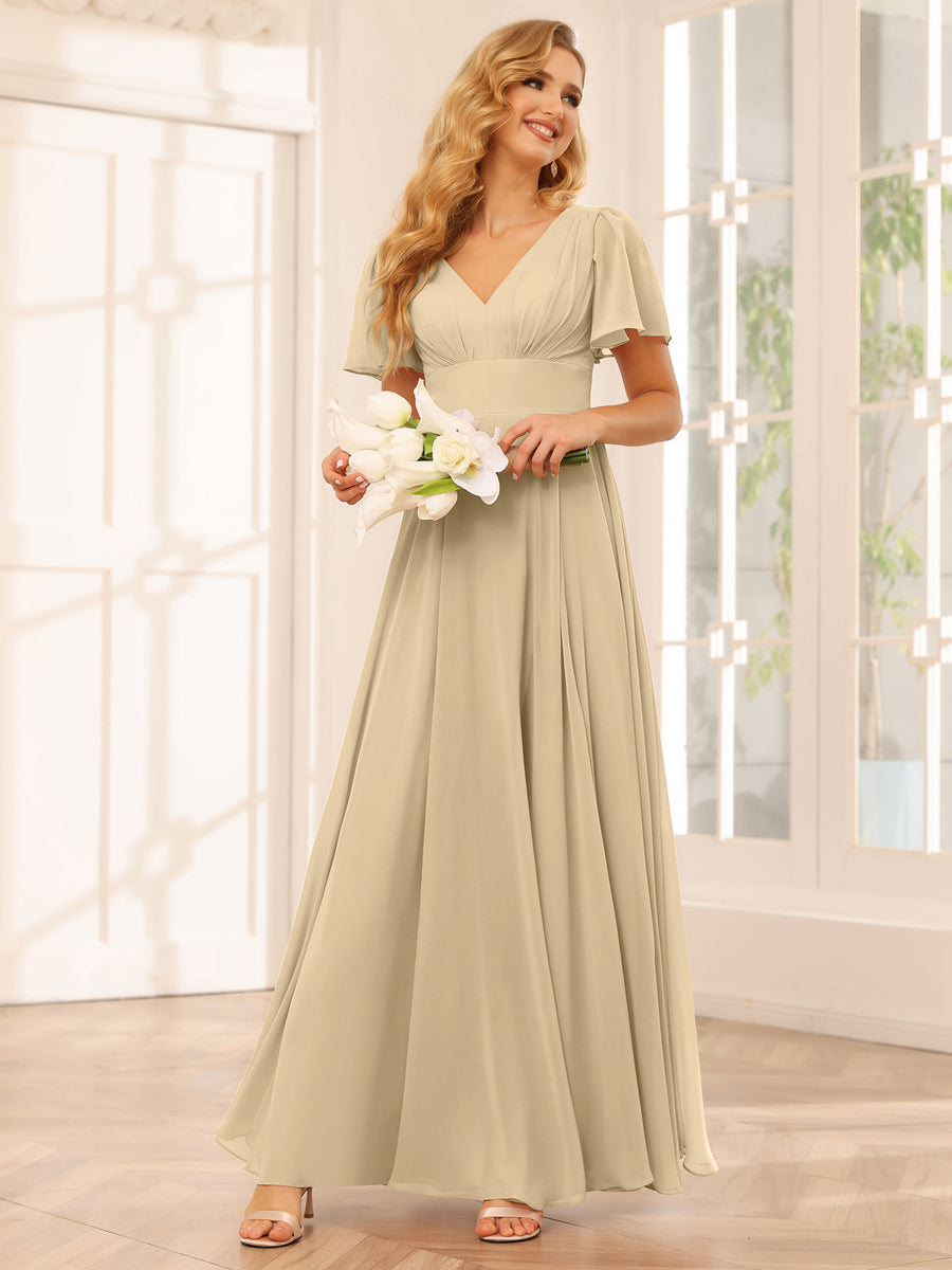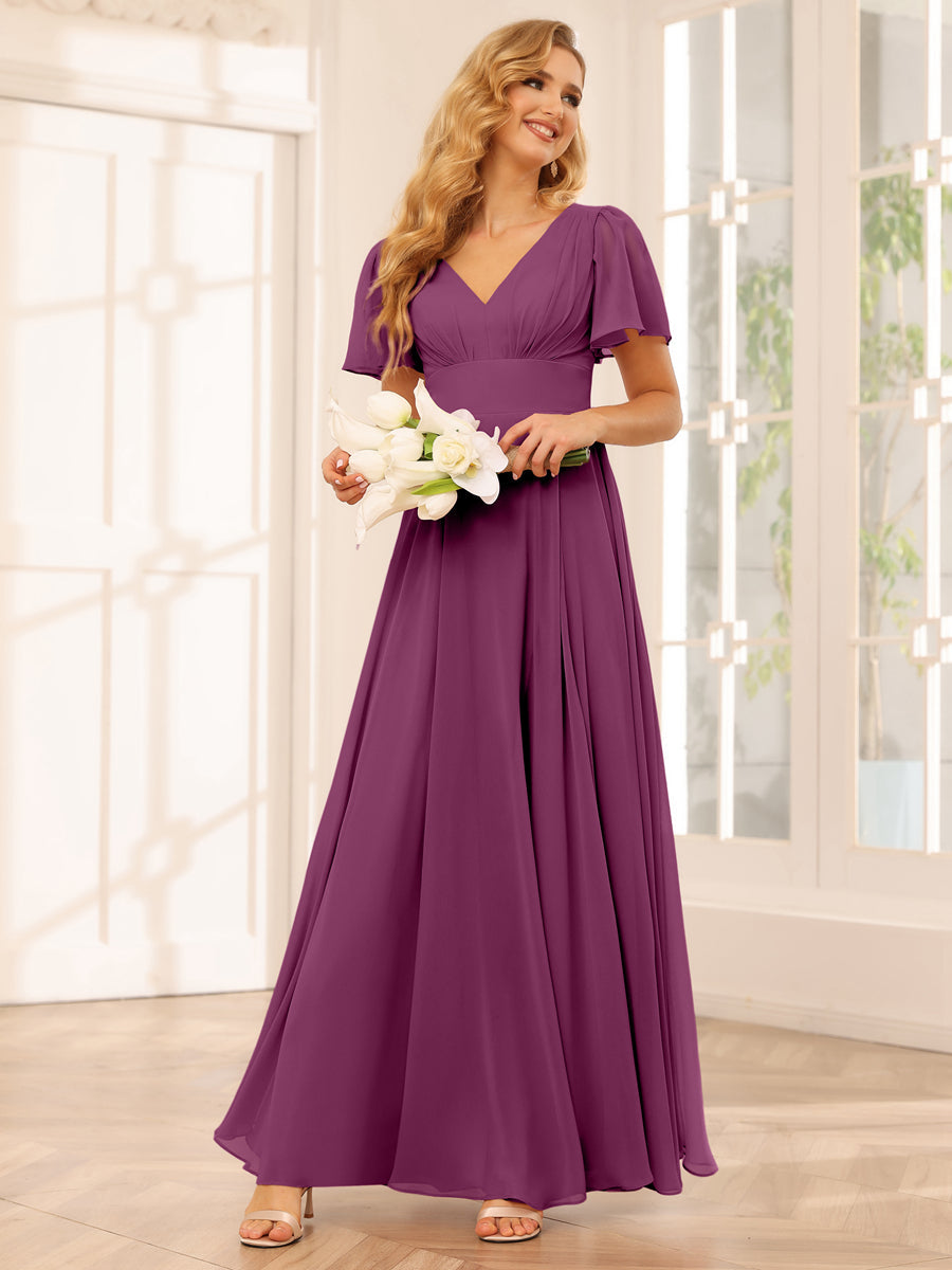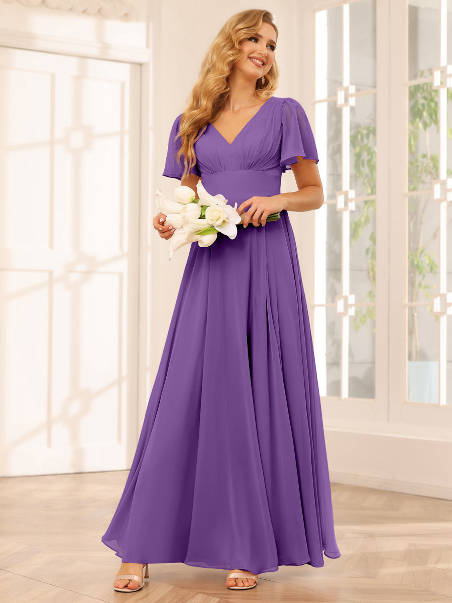 • A-Line/Princess V-Neck Long Bridesmaid Dresses with Split Side