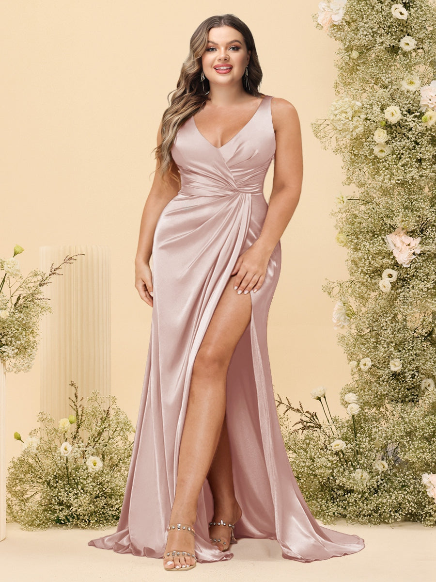#Luciene 9902464P Sheath/Column V-Neck Long Formal Plus Size Dresses with Split Side & Ruched