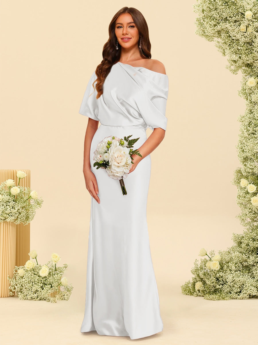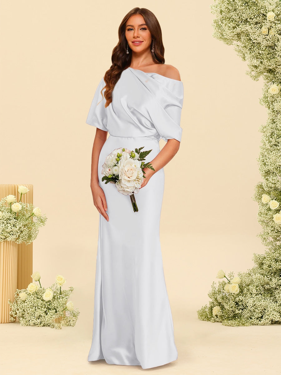 #Braelynn 12010060 Trumpet/Mermaid One-Shoulder Half Sleeves Bridesmaid Dresses With Ruched