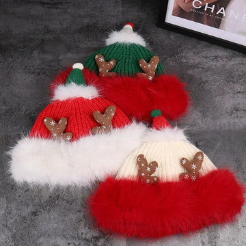 Heavyweight Solid Color Knit Christmas Hat with 3D Antlers