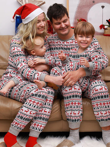 Cotton Crew Neck Family Christmas Pajama Set with Reindeer Print