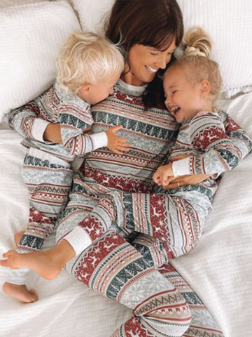 Family Matching Set Crew Neck Christmas Pajamas With Christmas Element Prints