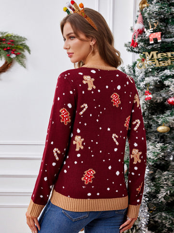 Cartoon Jacquard Thickened knit Crewneck Pullover Christmas Sweater