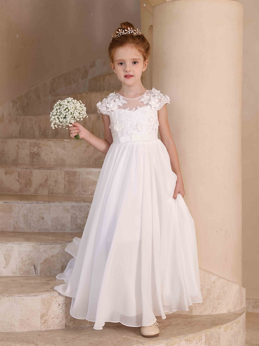 #Adeline 96621904 A-Line/Princess Crew Neck Chiffon Flower Girl Dresses with Appliques