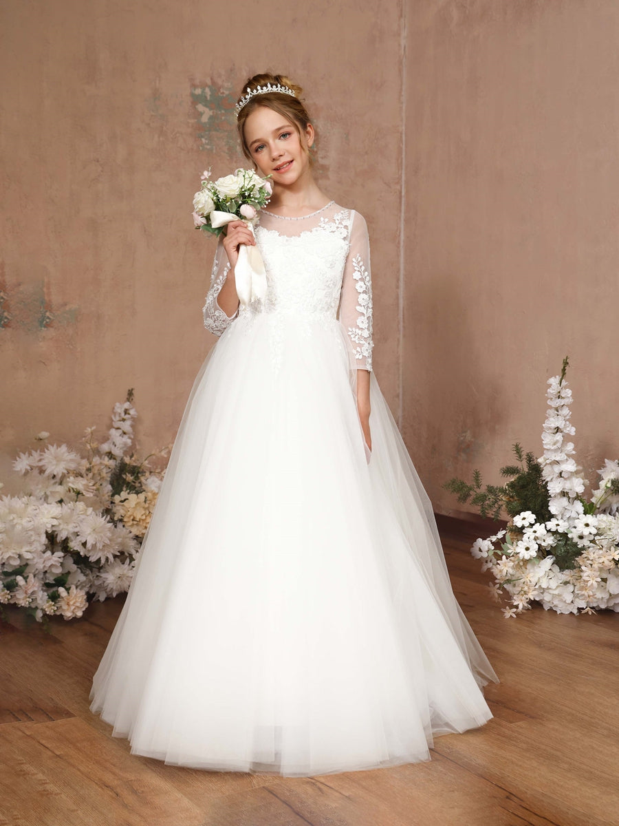 #Cataleya K491918 Ball-Gown 3/4 Sleeves Scoop Neck Floor-Length Flower Girl Dresses