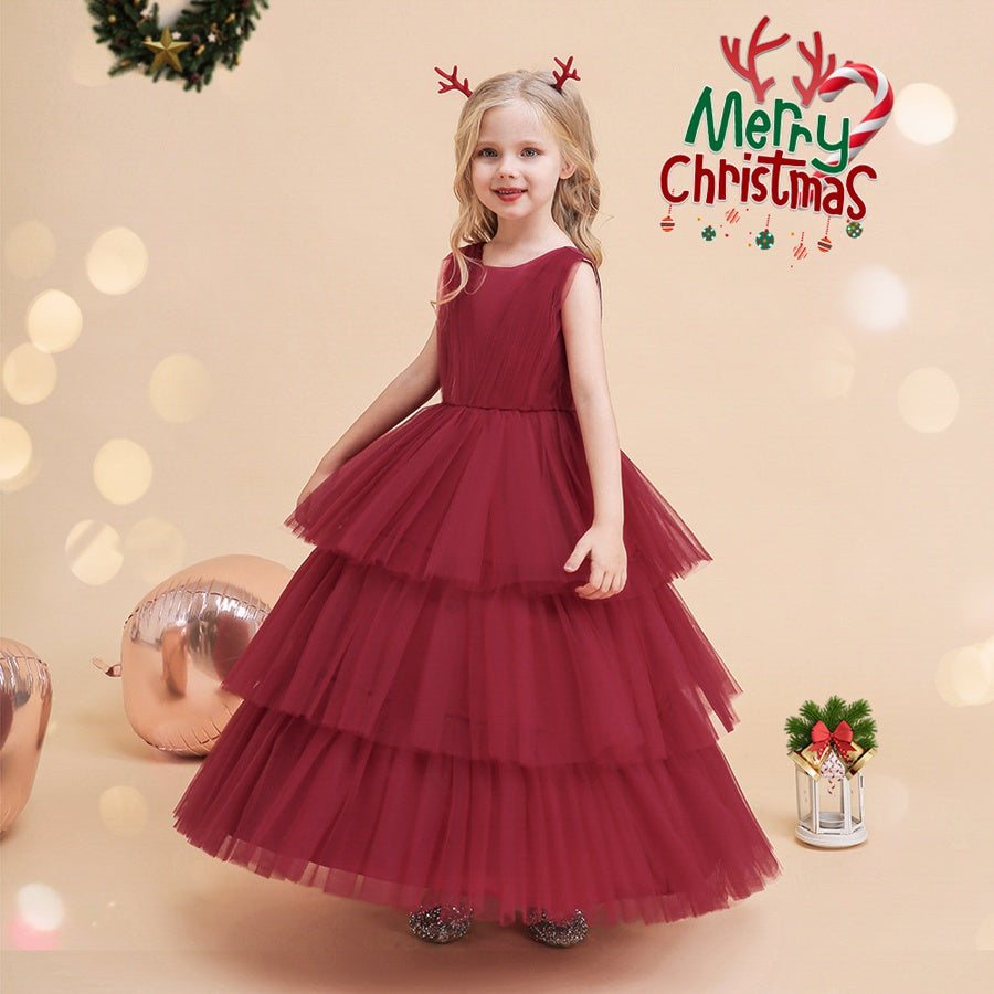 #Edna 9661015 Tulle Ball Gown Scoop Sleeveless Ankle-Length Christmas Dresses for Girls