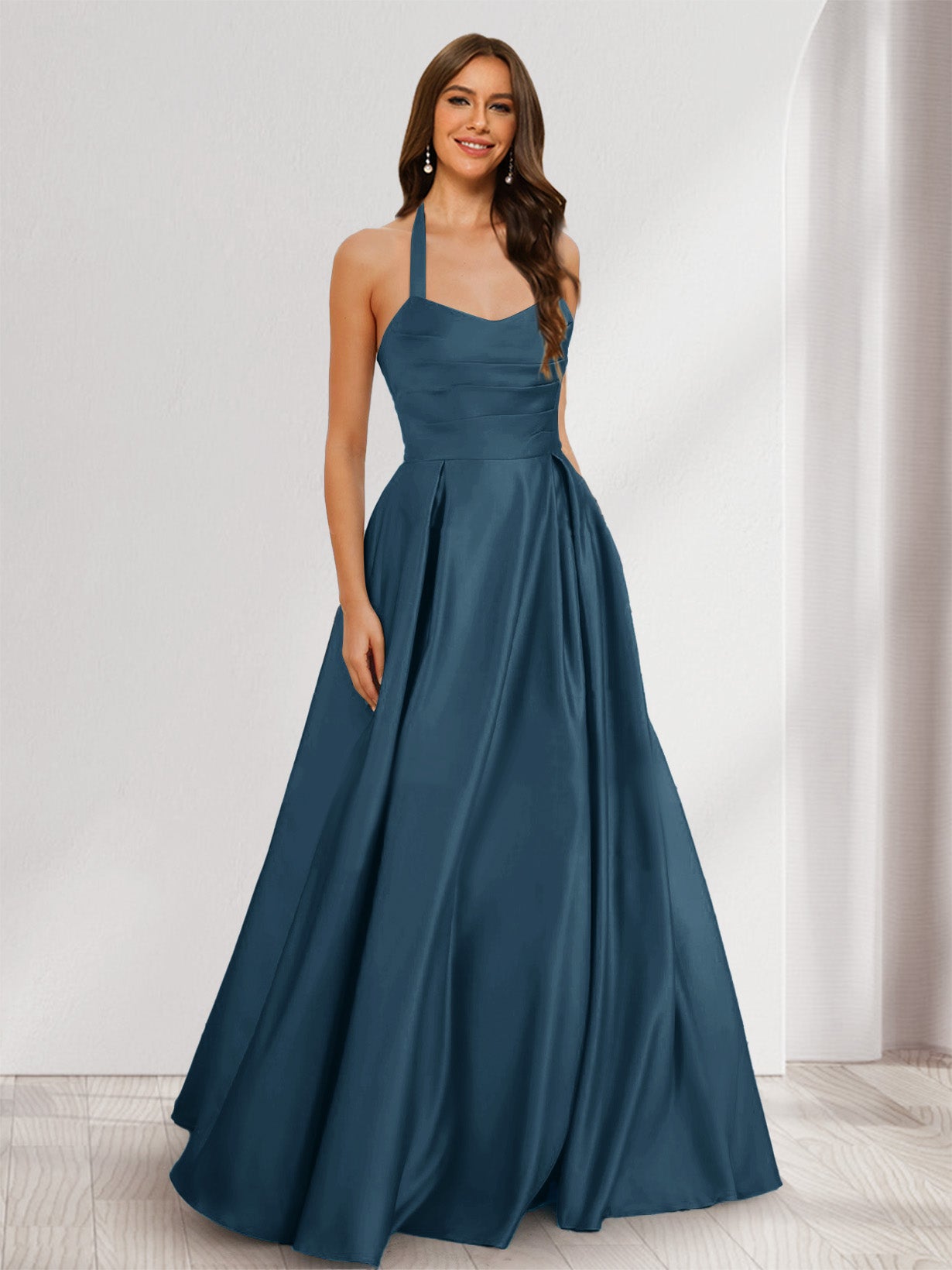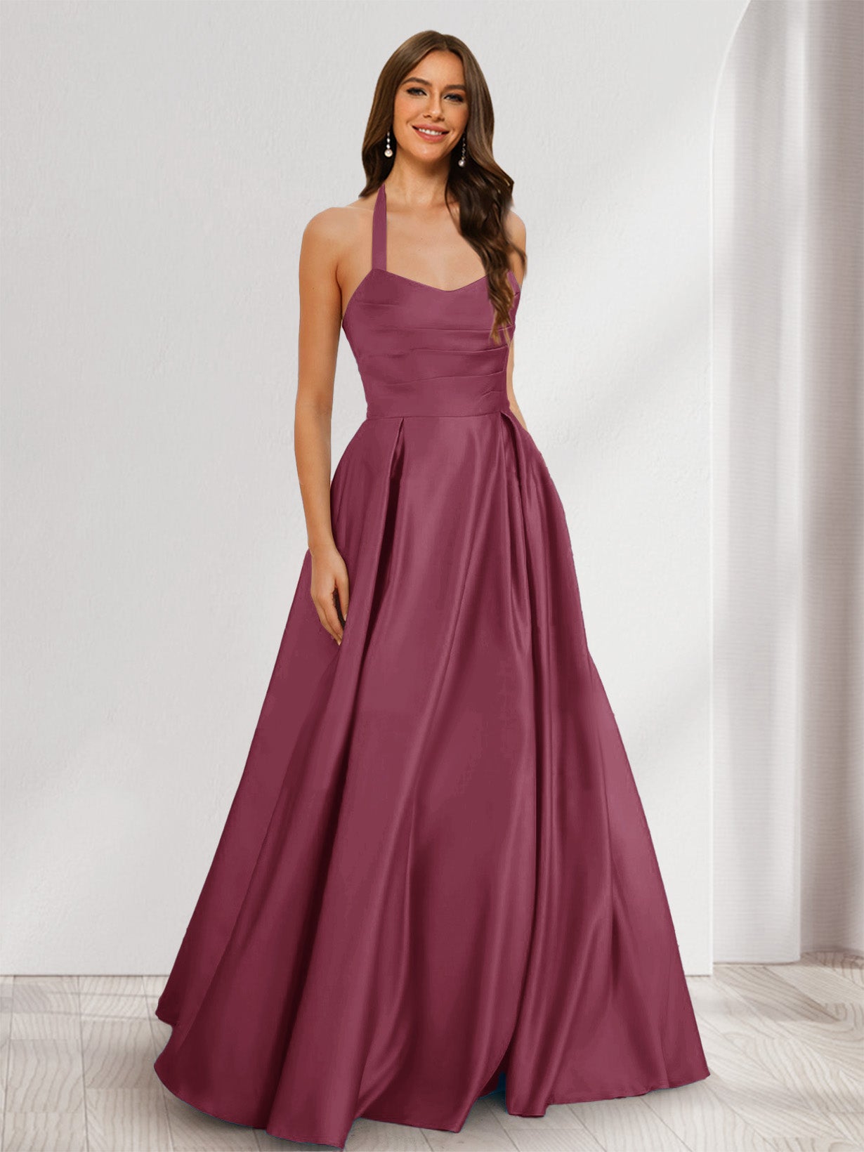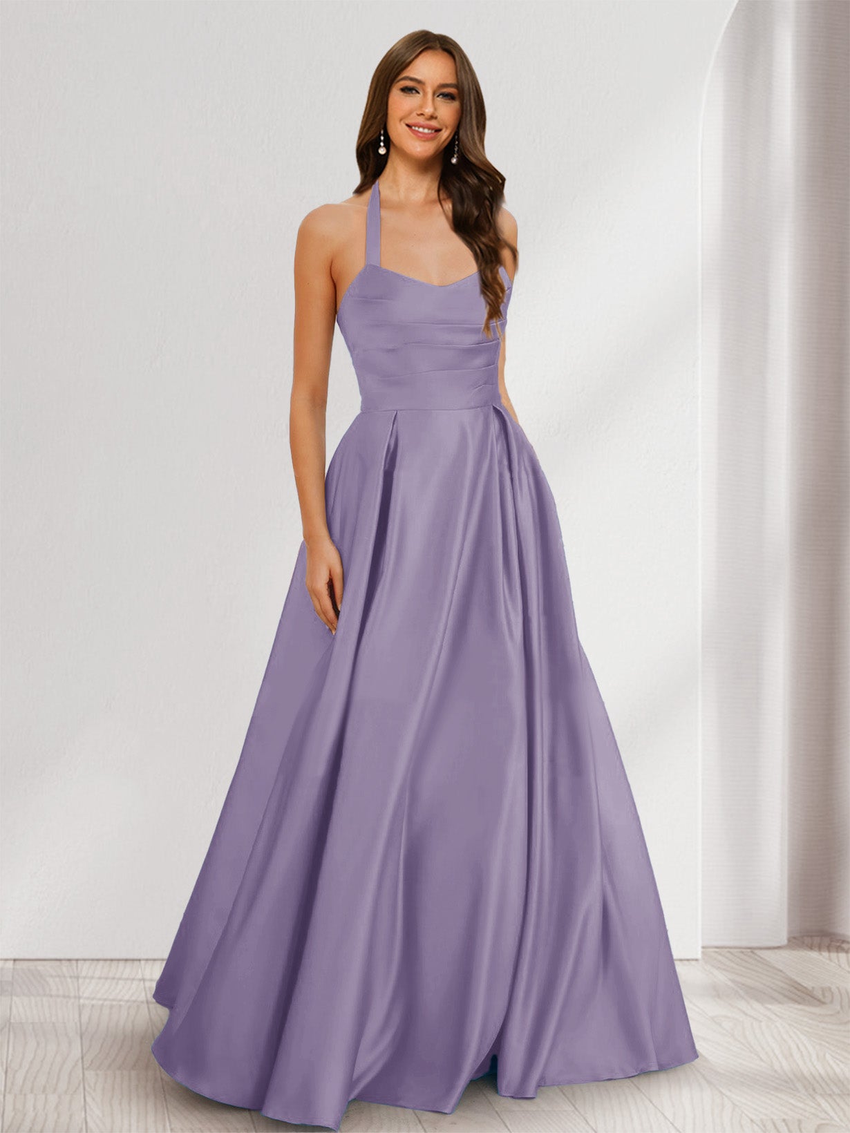 • A-Line/Princess Halter Sleeveless Ruched Bridesmaid Dresses