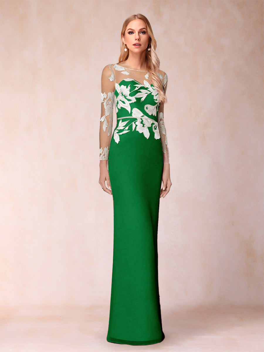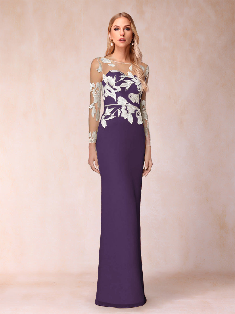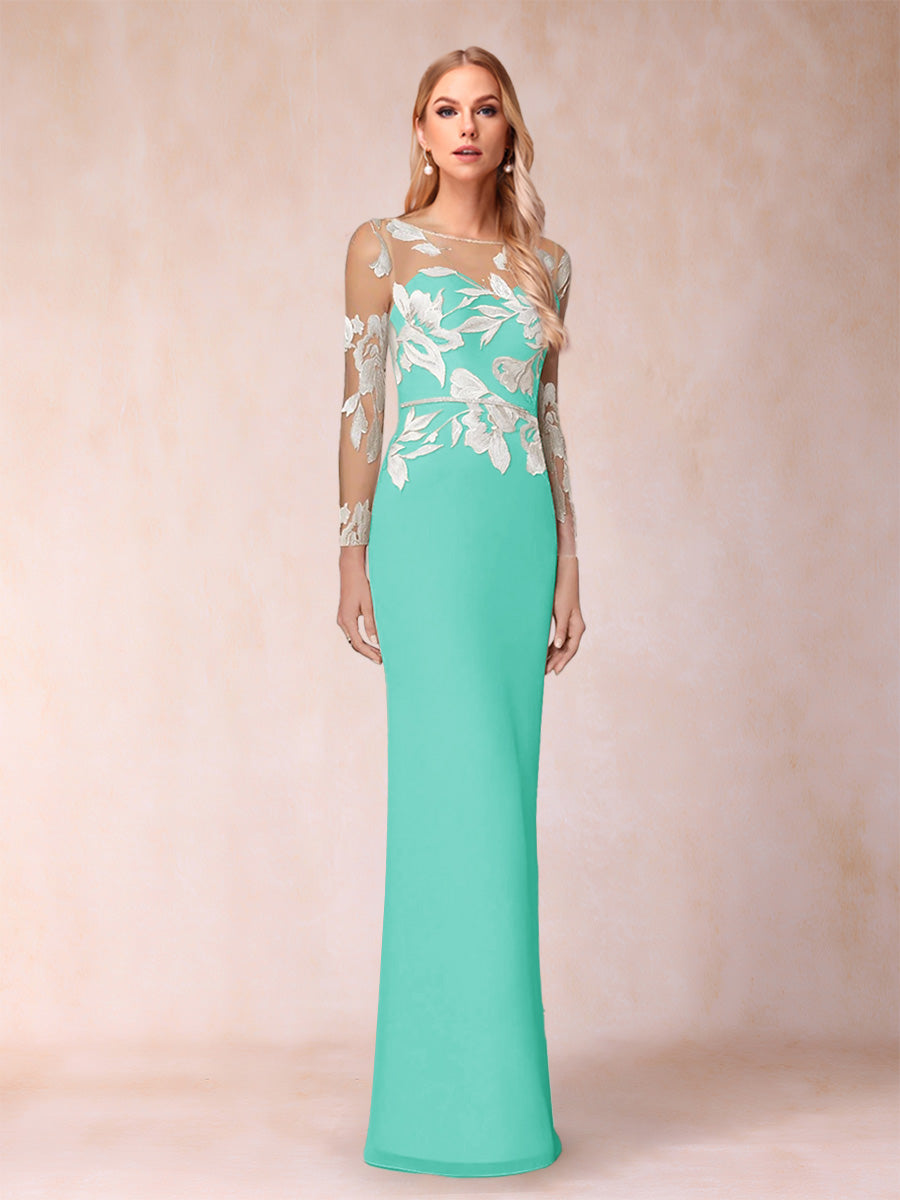 #Jill 12011010 Sheath/Column Scoop Long Sleeves Floor-Length Lace Mother of the Bride Dresses
