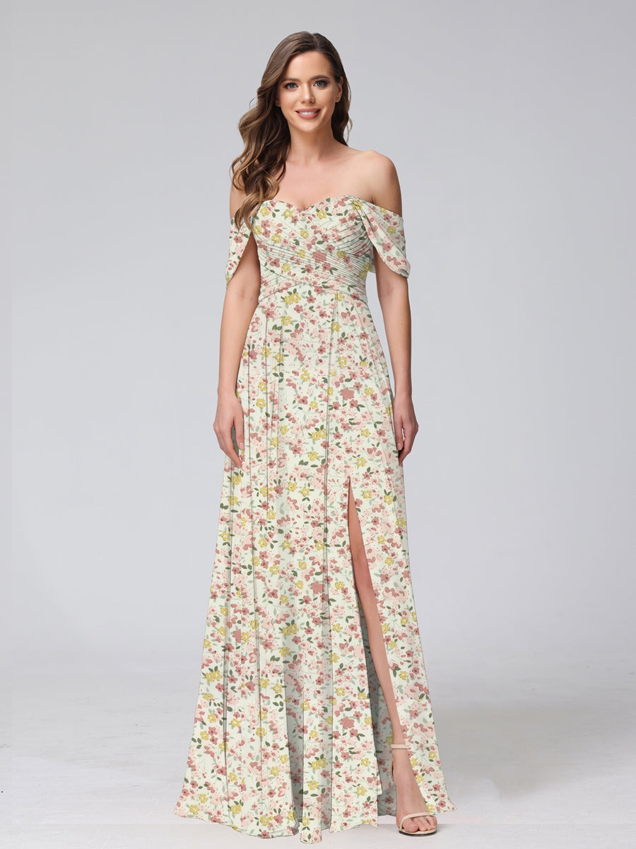 #Casual 99091020 A-Line/Princess Off-the-Shoulder Short Sleeves Split Side Floral Bridesmaid Dresses