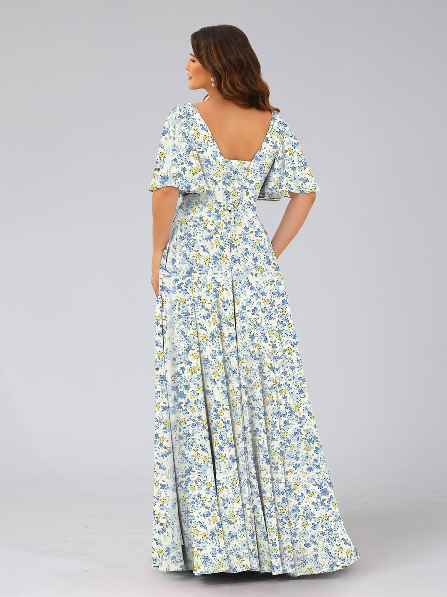 #Arrange 99091002 A-Line/Princess V-Neck Half Sleeves Ruched Floral Bridesmaid Dresses