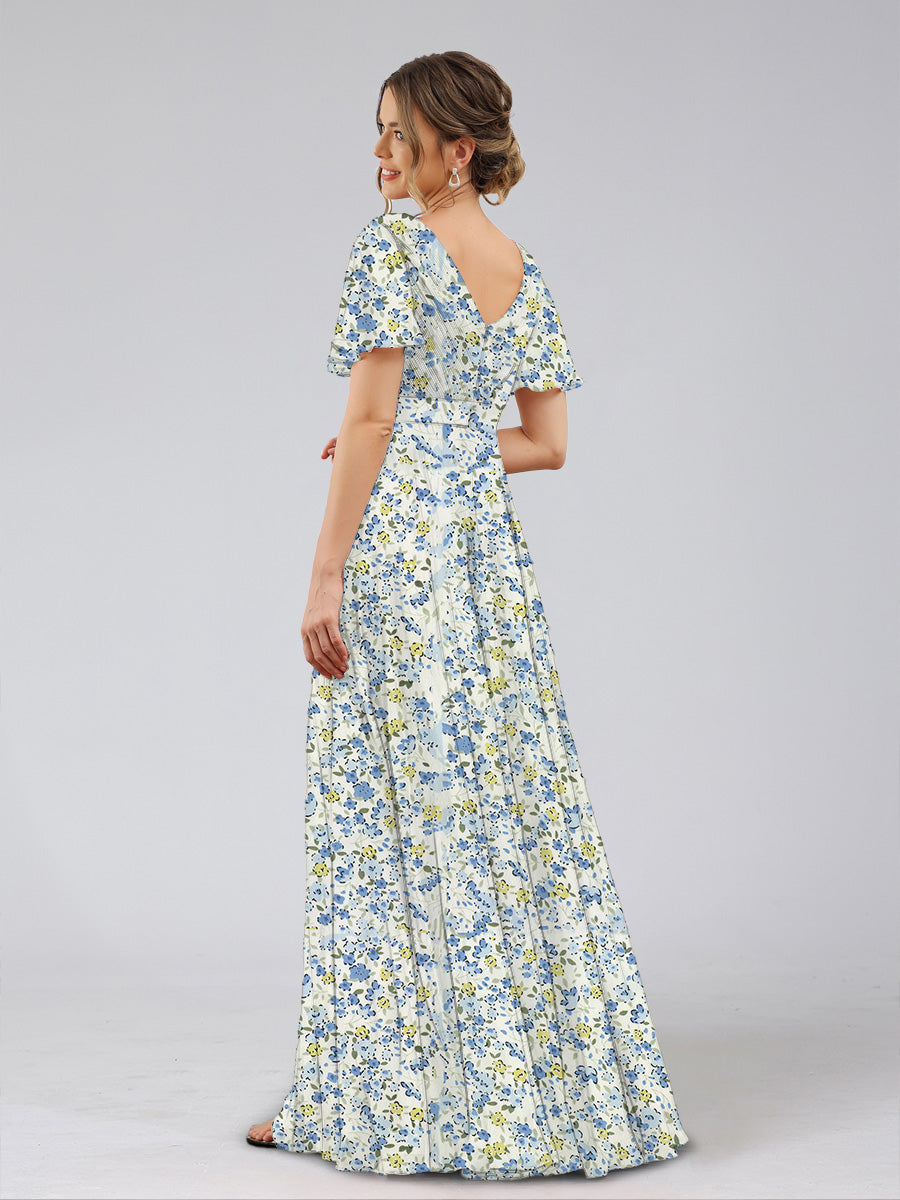 #Bicycle 99091014 A-Line/Princess V-Neck Short Sleeves Ruched Floral Bridesmaid Dresses