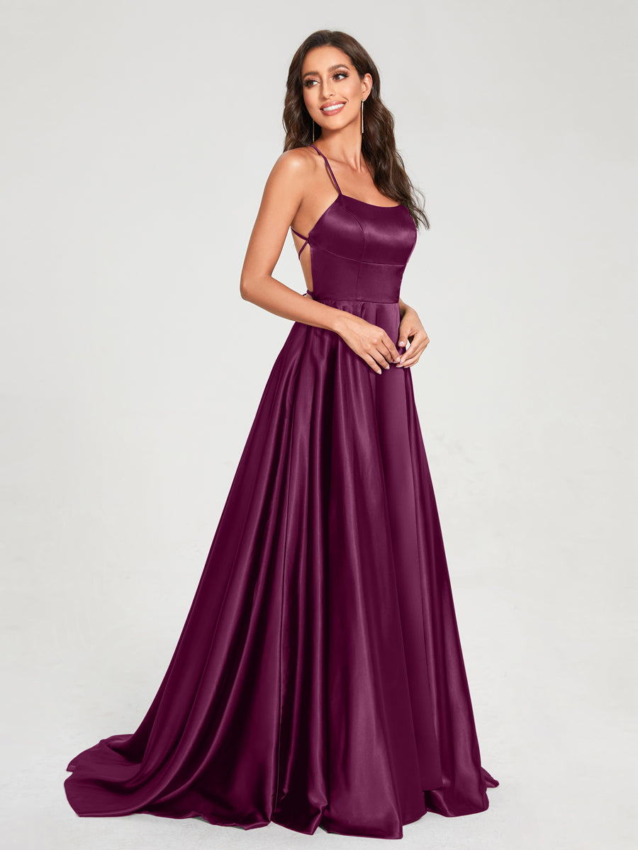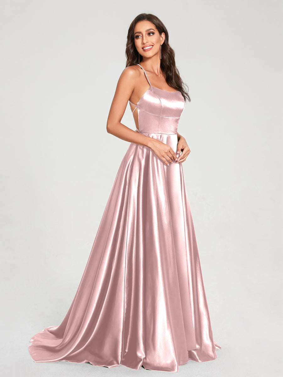 • A-Line/Princess Spaghetti Straps Sleeveless Floor-Length Split Side Backless Bridesmaid Dresses