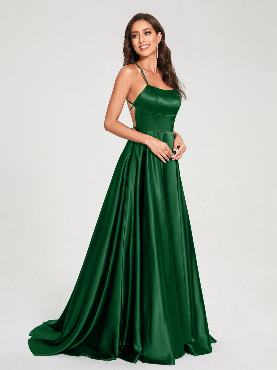 #Sadie 68110 A-Line/Princess Spaghetti Straps Sleeveless Floor-Length Split Side Backless Bridesmaid Dresses