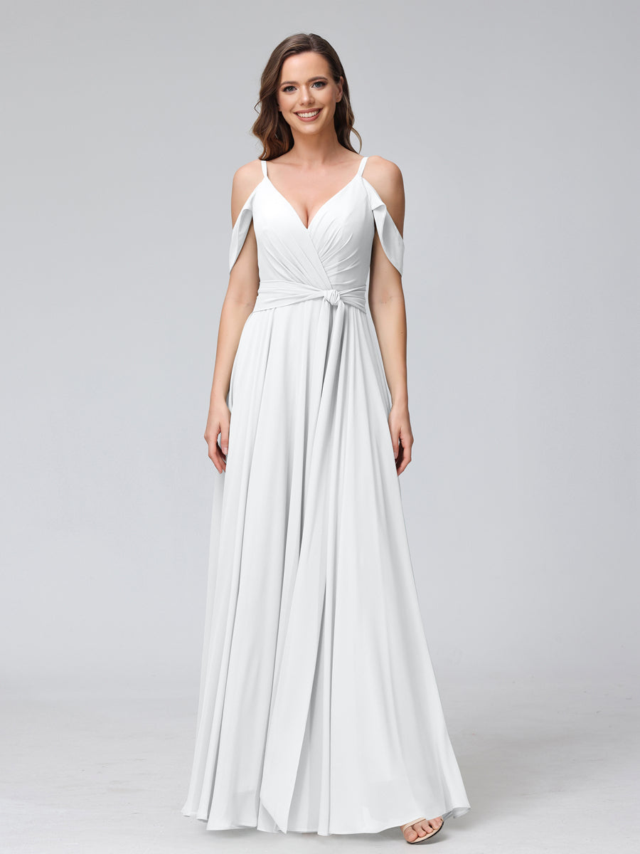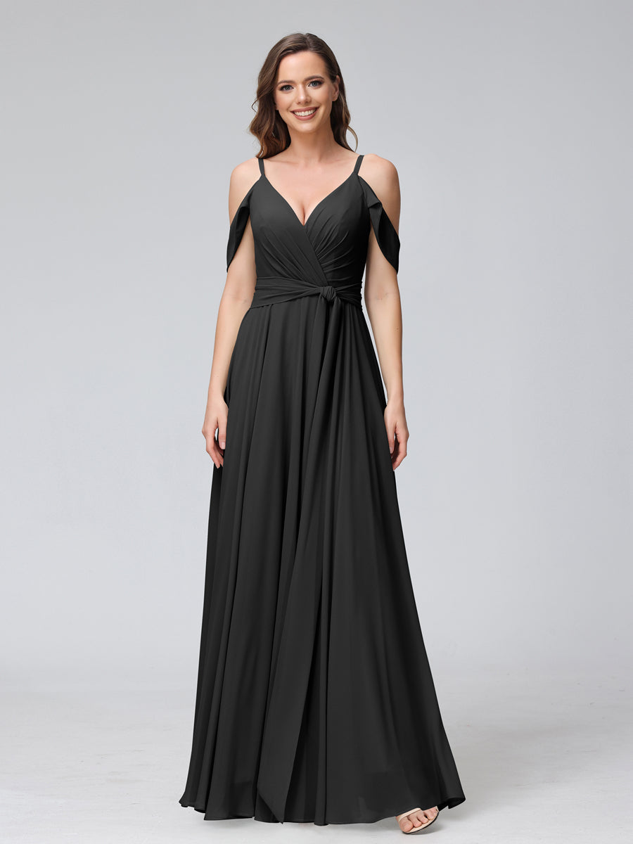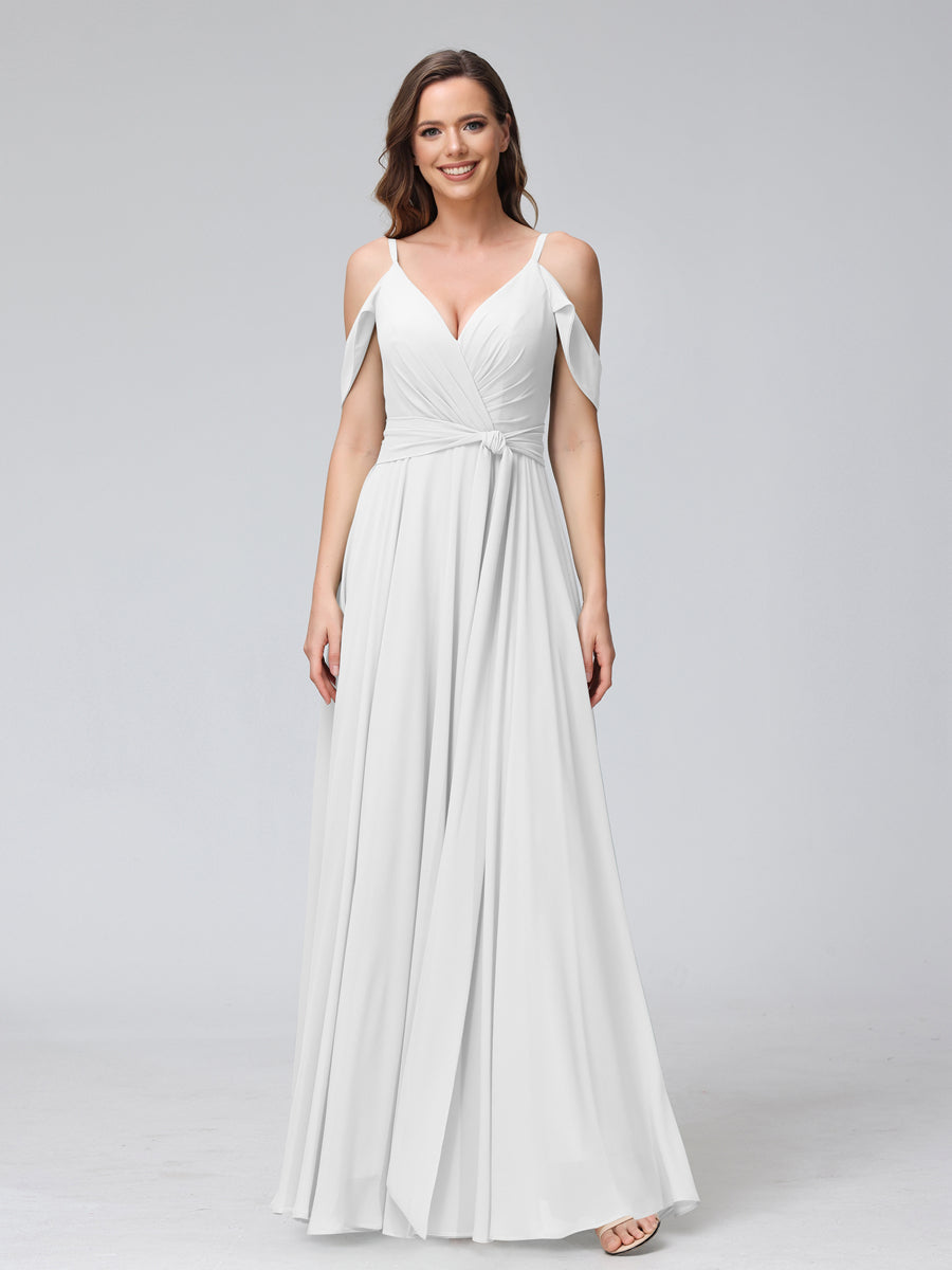 #Hayley 9816212 A-Line V-Neck Short Sleeves Chiffon Bridesmaid Dresses with Spaghetti Straps & Split Side