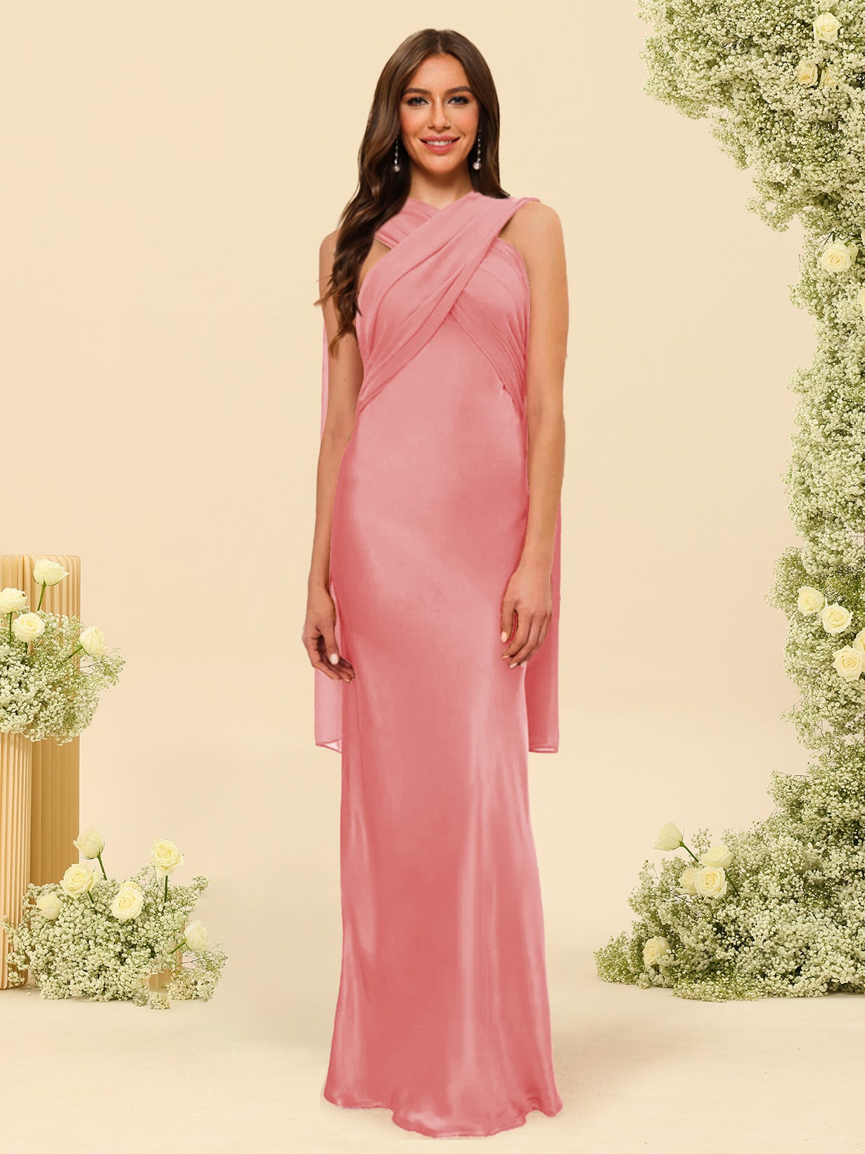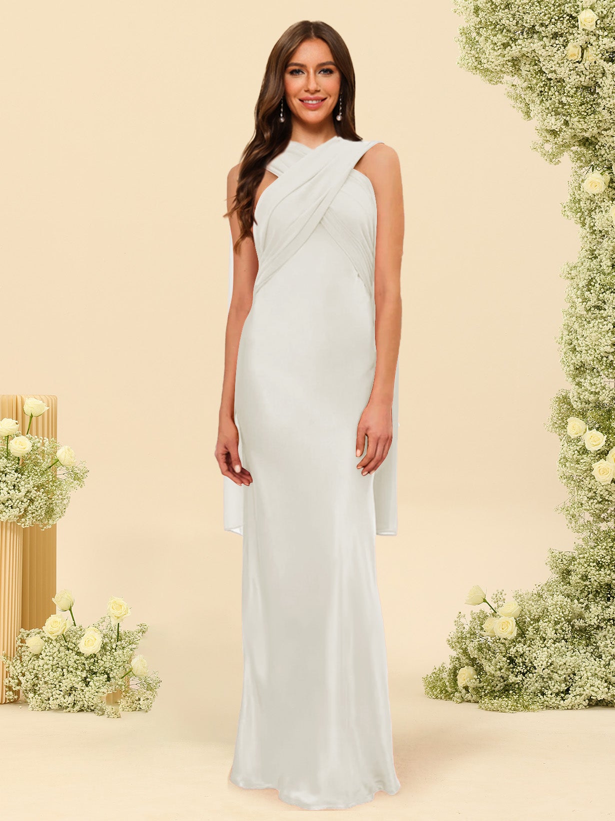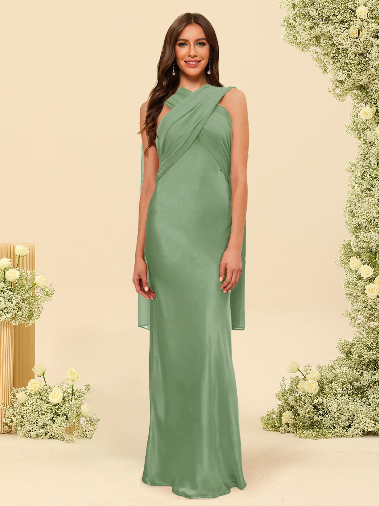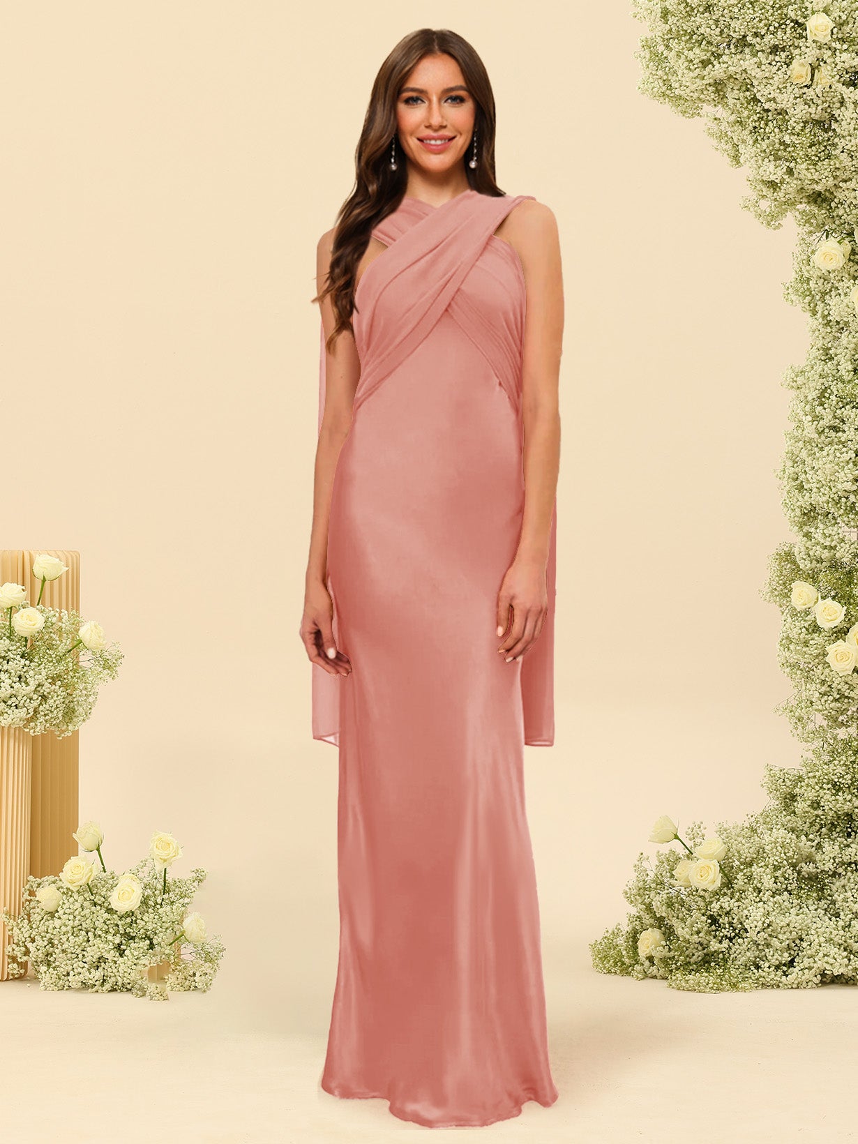 #Zainab 12010074 Sheath/Column Halter Sleeveless Floor-Length Lace-Up Bridesmaid Dresses