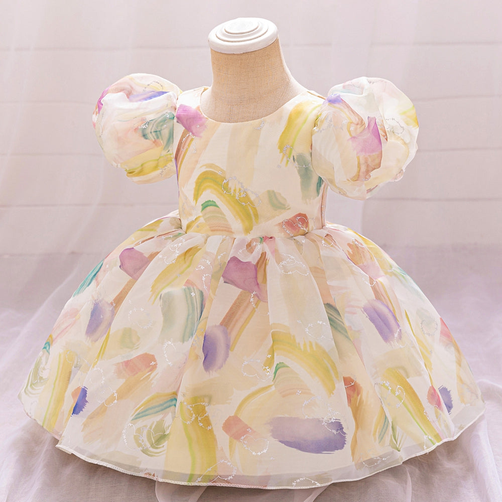 • Ball Gown Scoop Puff Sleeves Flower Girl Dresses with Ruched