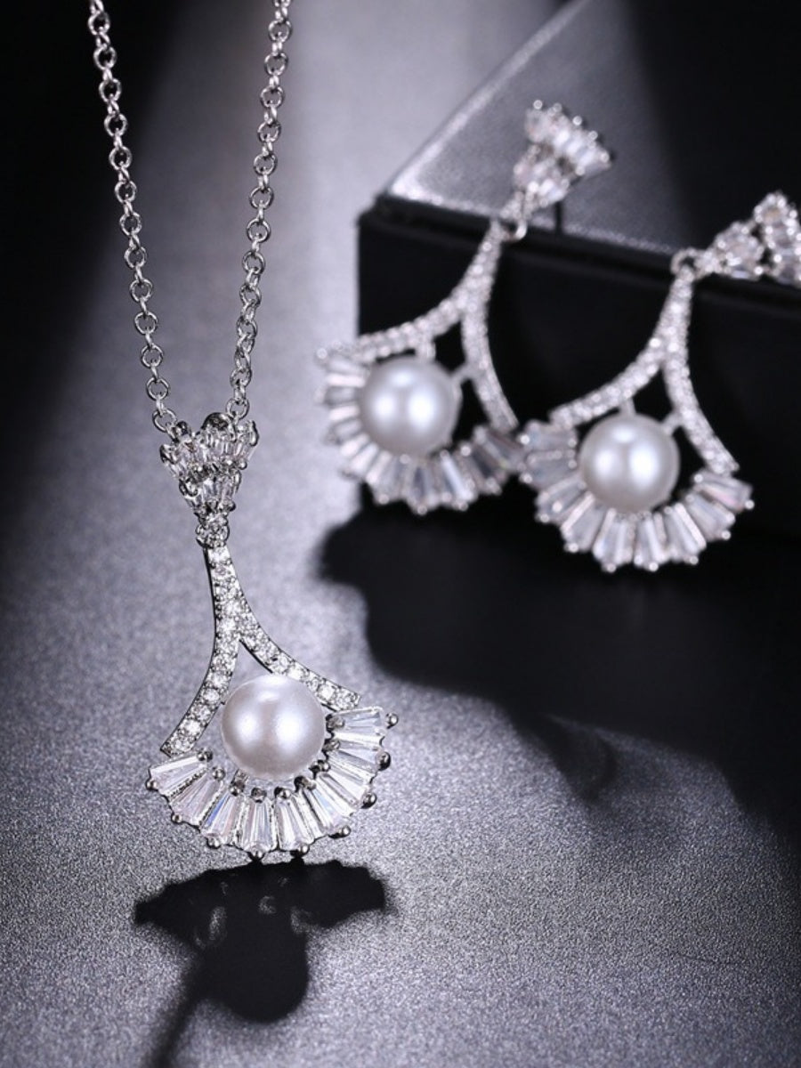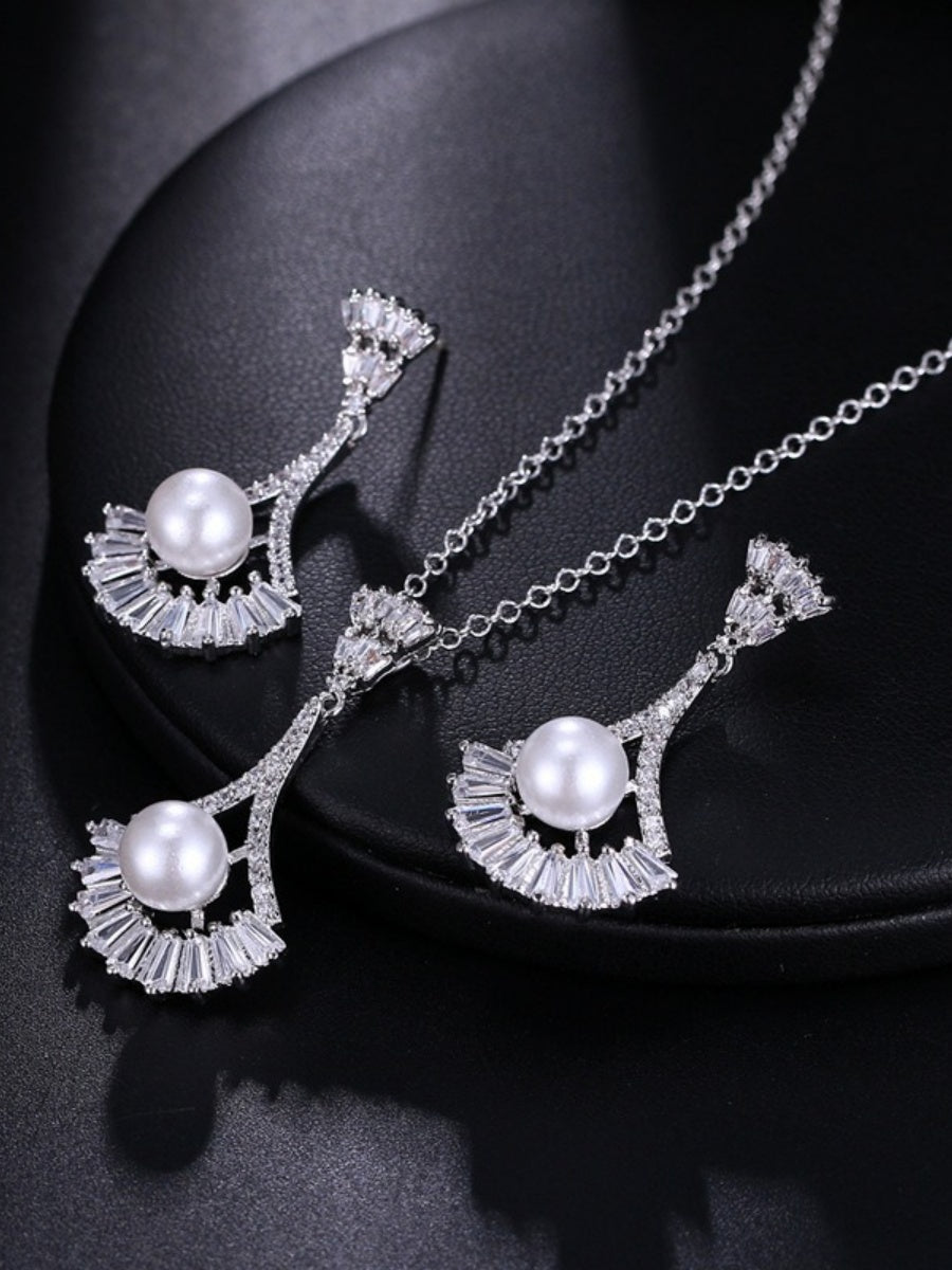 #2141029 Versatile Fashion Pearl Earrings and Necklace Set