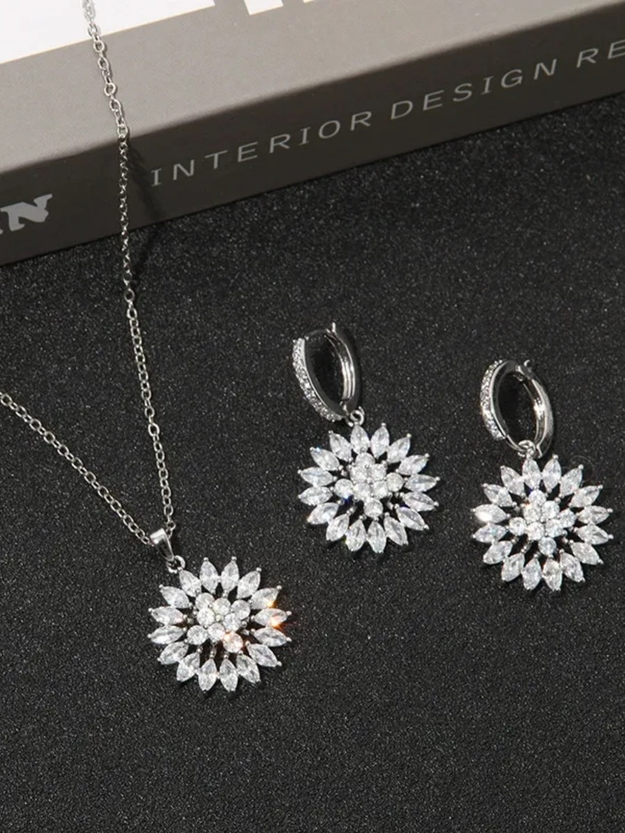 #2141031 Versatile Zirconia Sunflower Earrings and Pendant Set