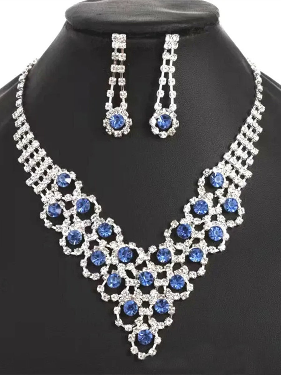 #2141018 Women's Shiny Crystal Necklace Earrings Delicated Jewelry Set