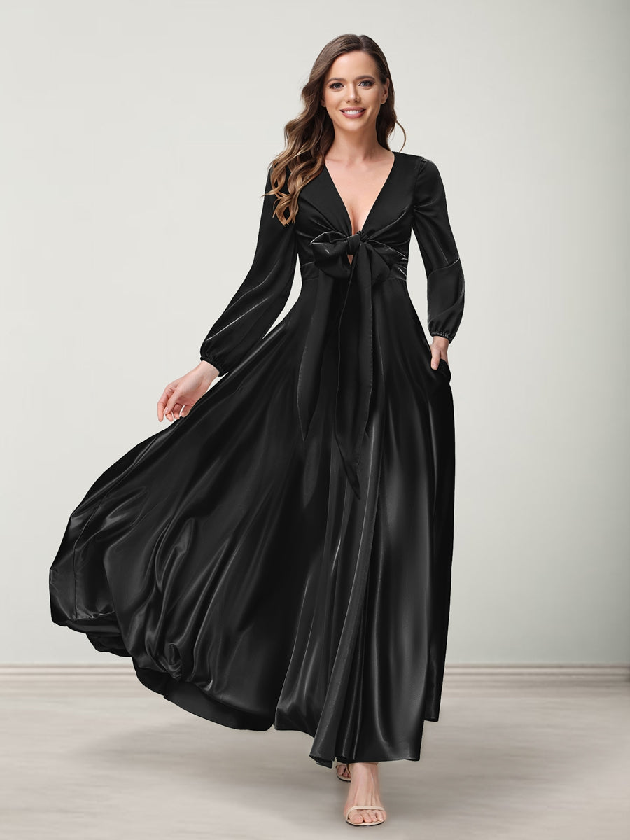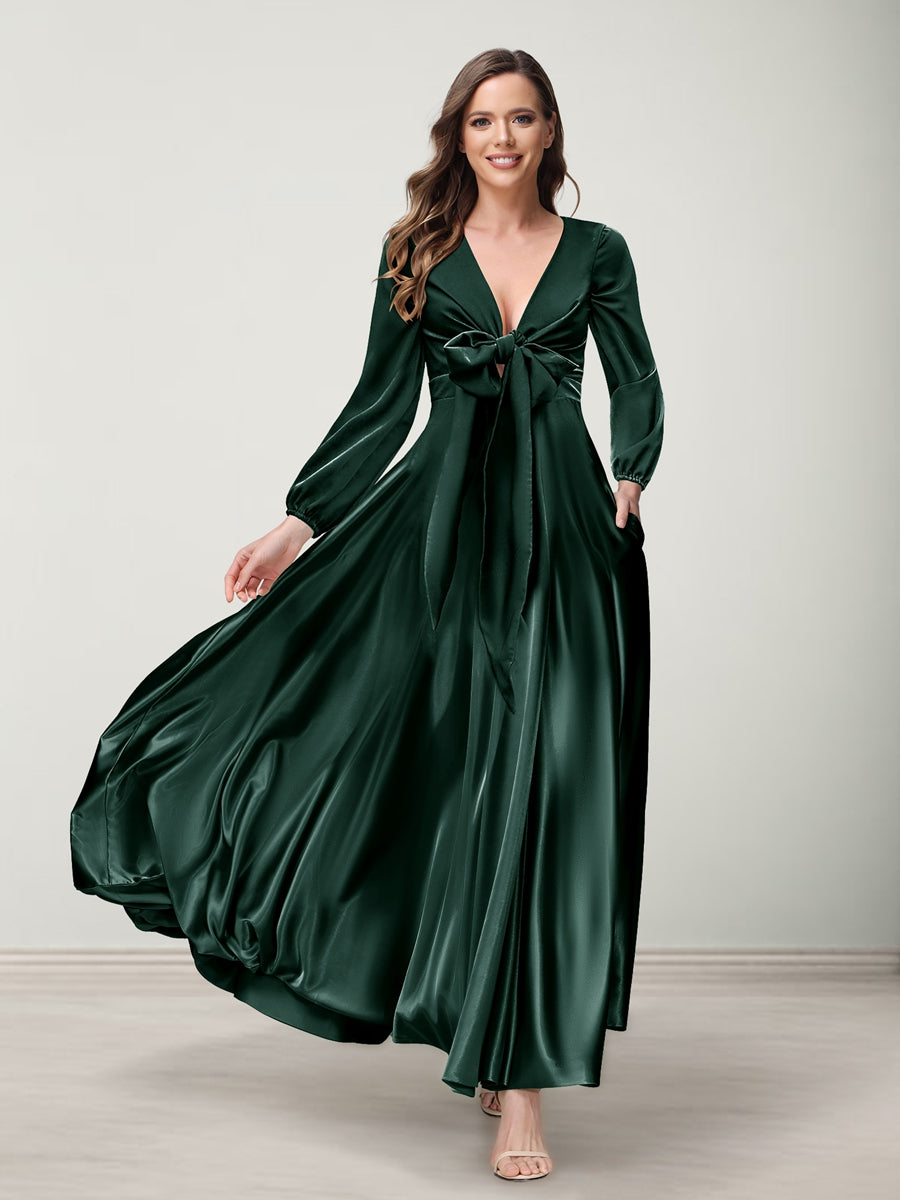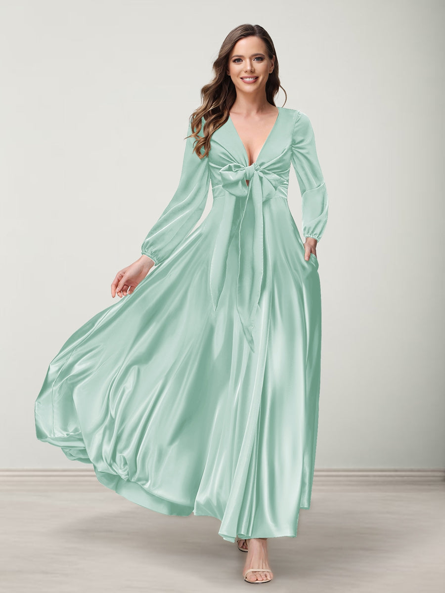 #Addilyn A9816221 A-Line/Princess V-Neck Long Sleeves Bridesmaid Dresses with Pockets