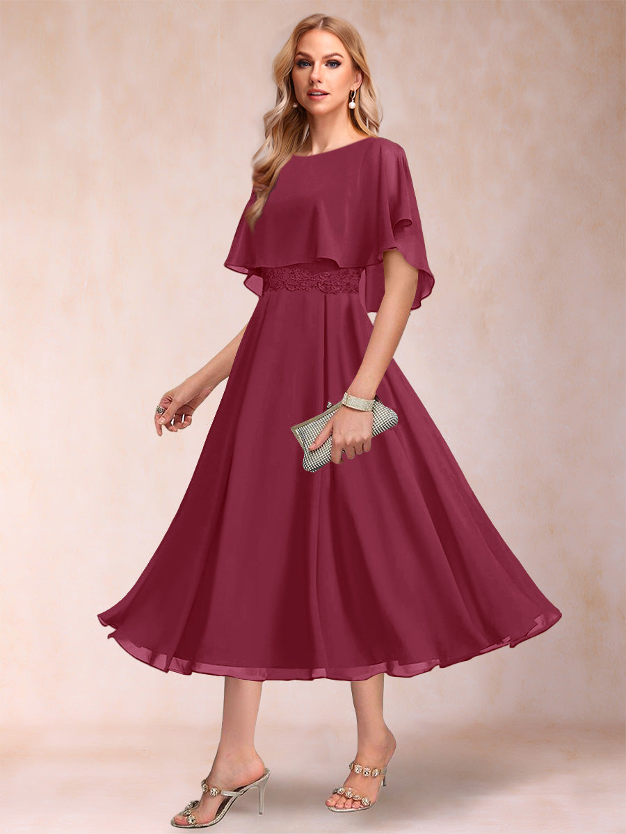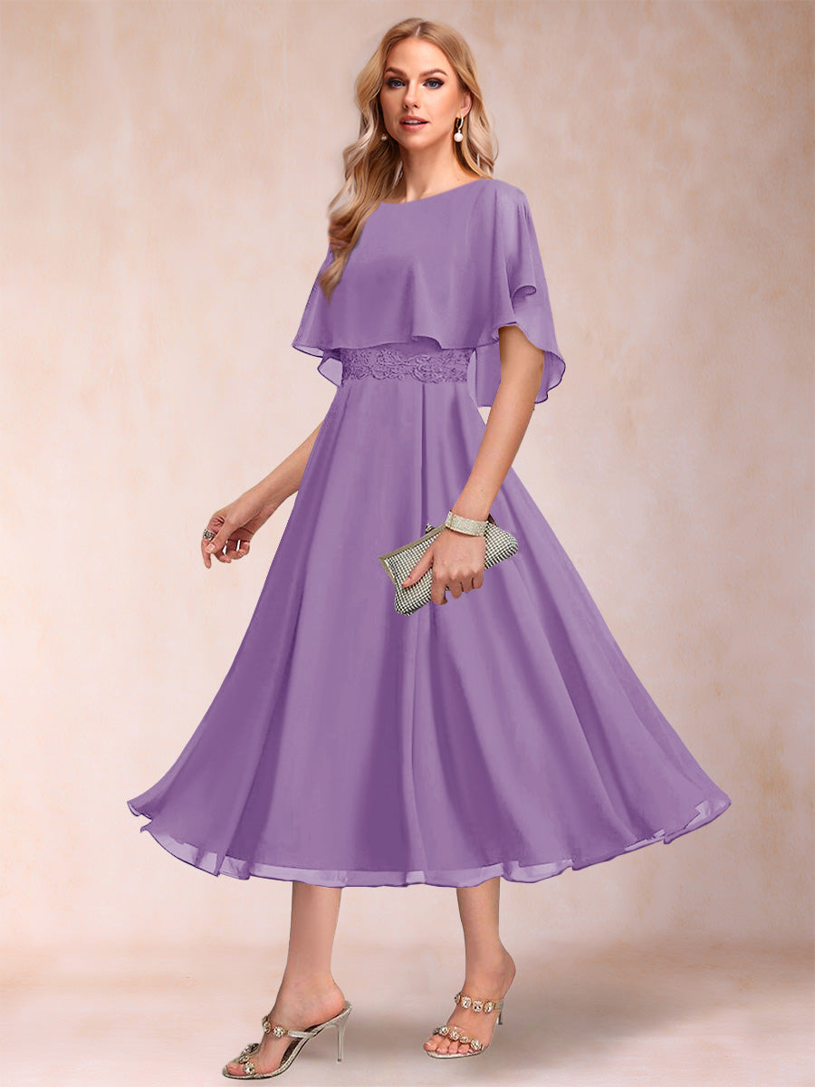 #Nerys 12010281 A-Line/Princess Chiffon Scoop Short Sleeves Mother of the Bride Dresses with Shawl