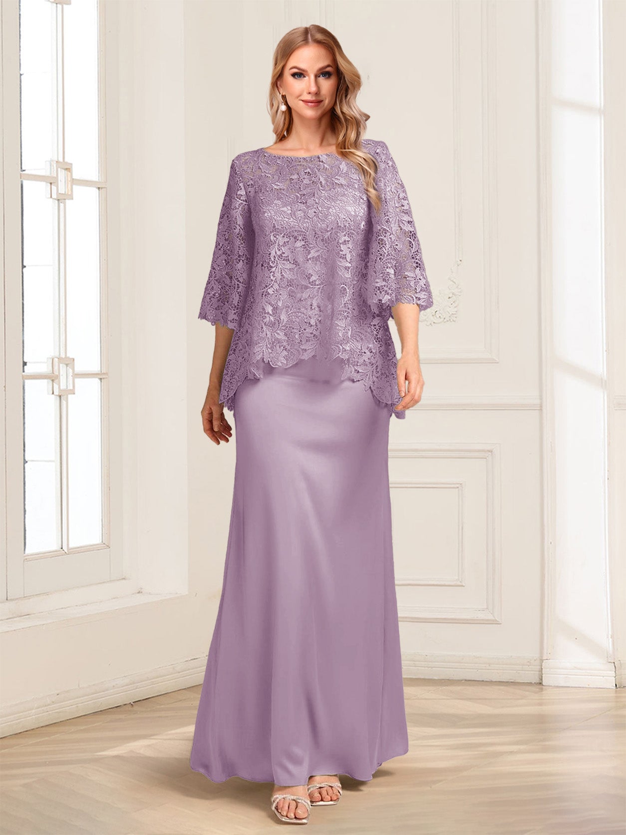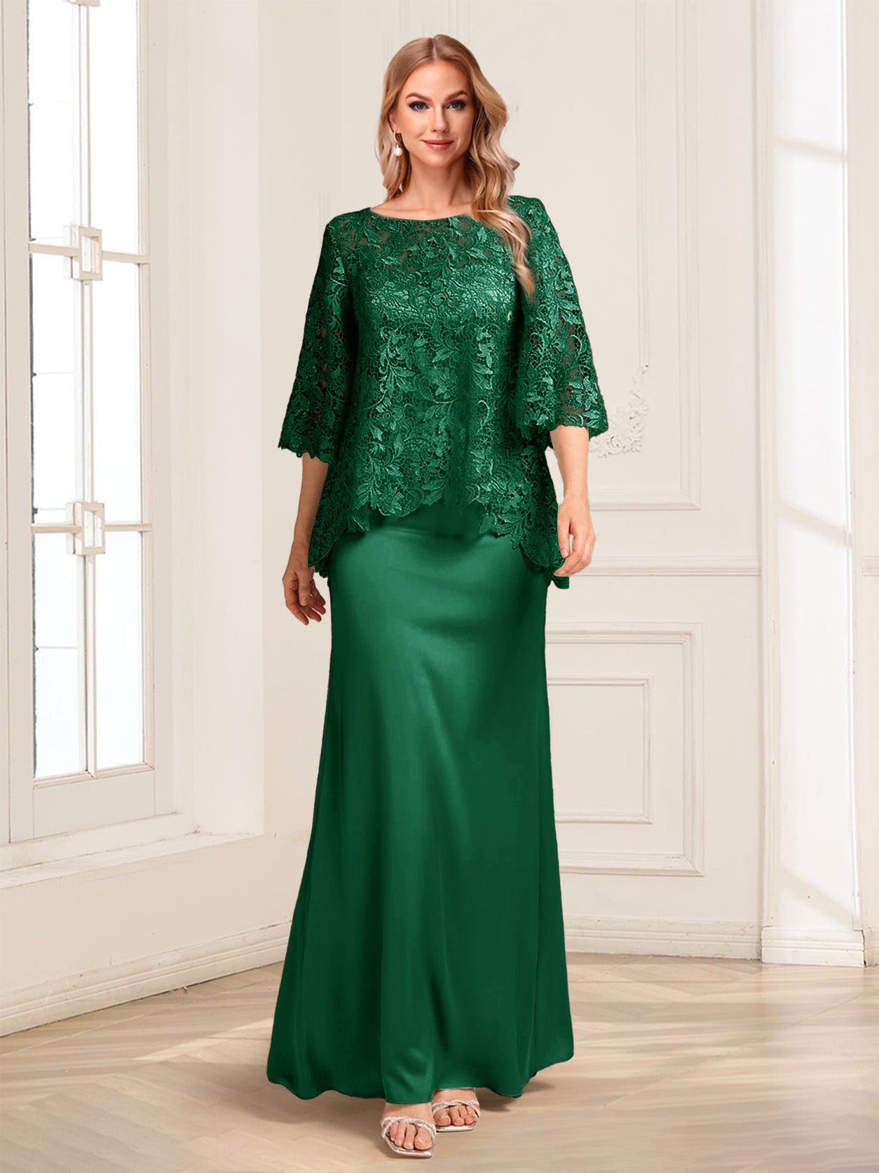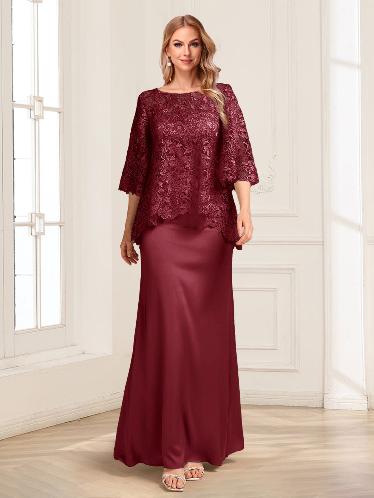 #Theobald 12011812 Lace Sheath/Column Crew Neck Half Sleeves Mother of the Bride Dresses