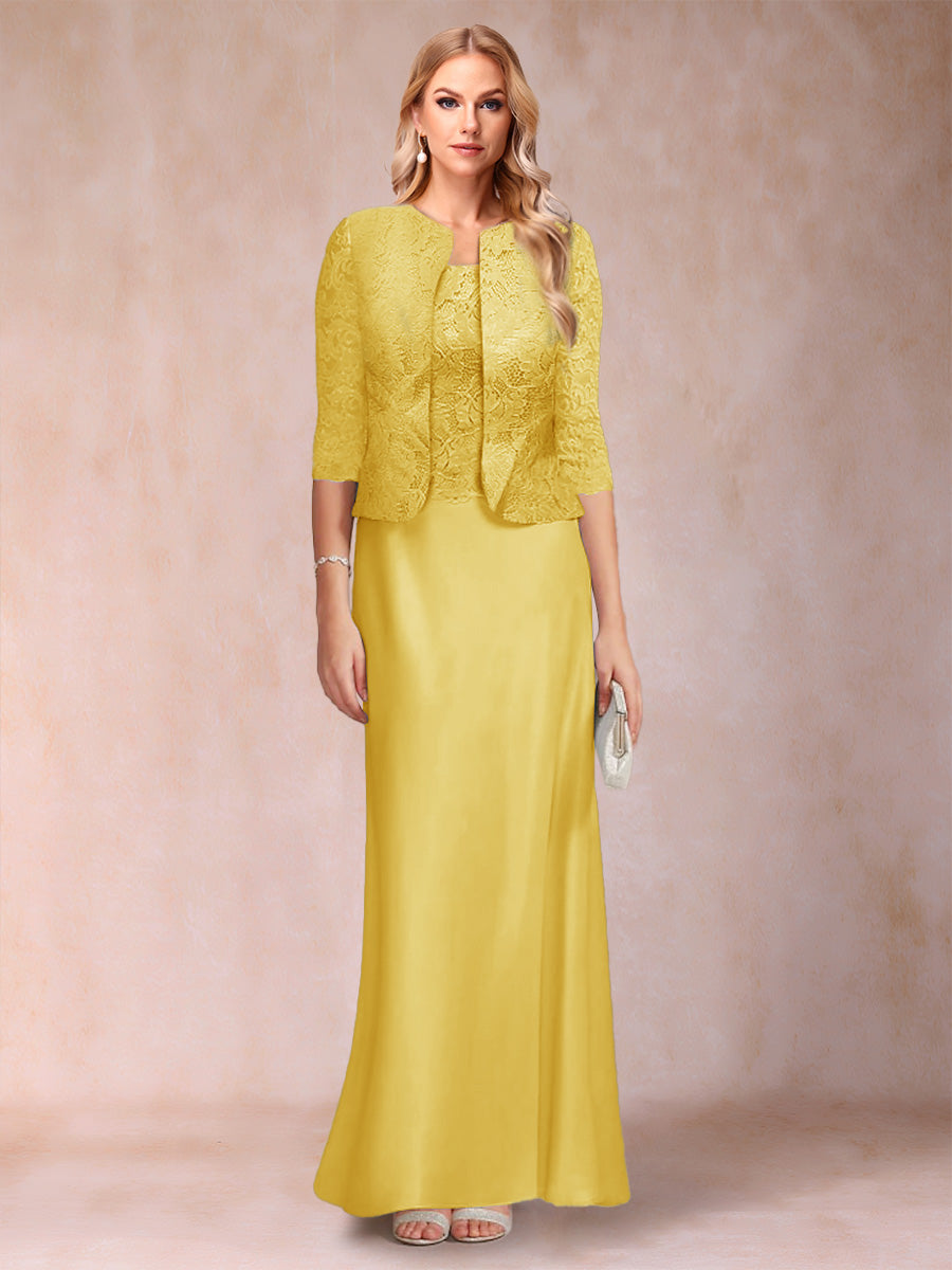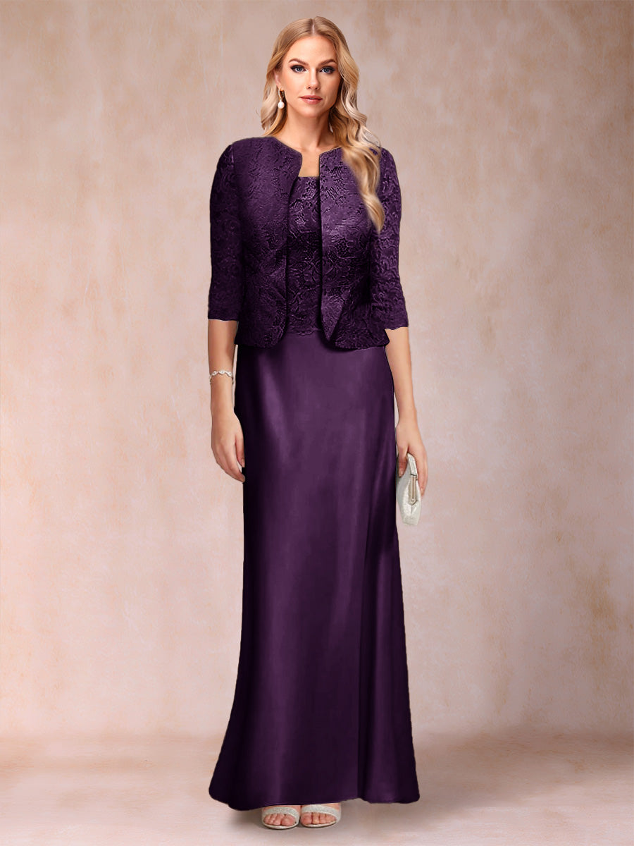 #Riya 12010375 Sheath/Column Scoop Half Sleeves 3 Pieces Mother of the Bride Dress with Applique & Jacket