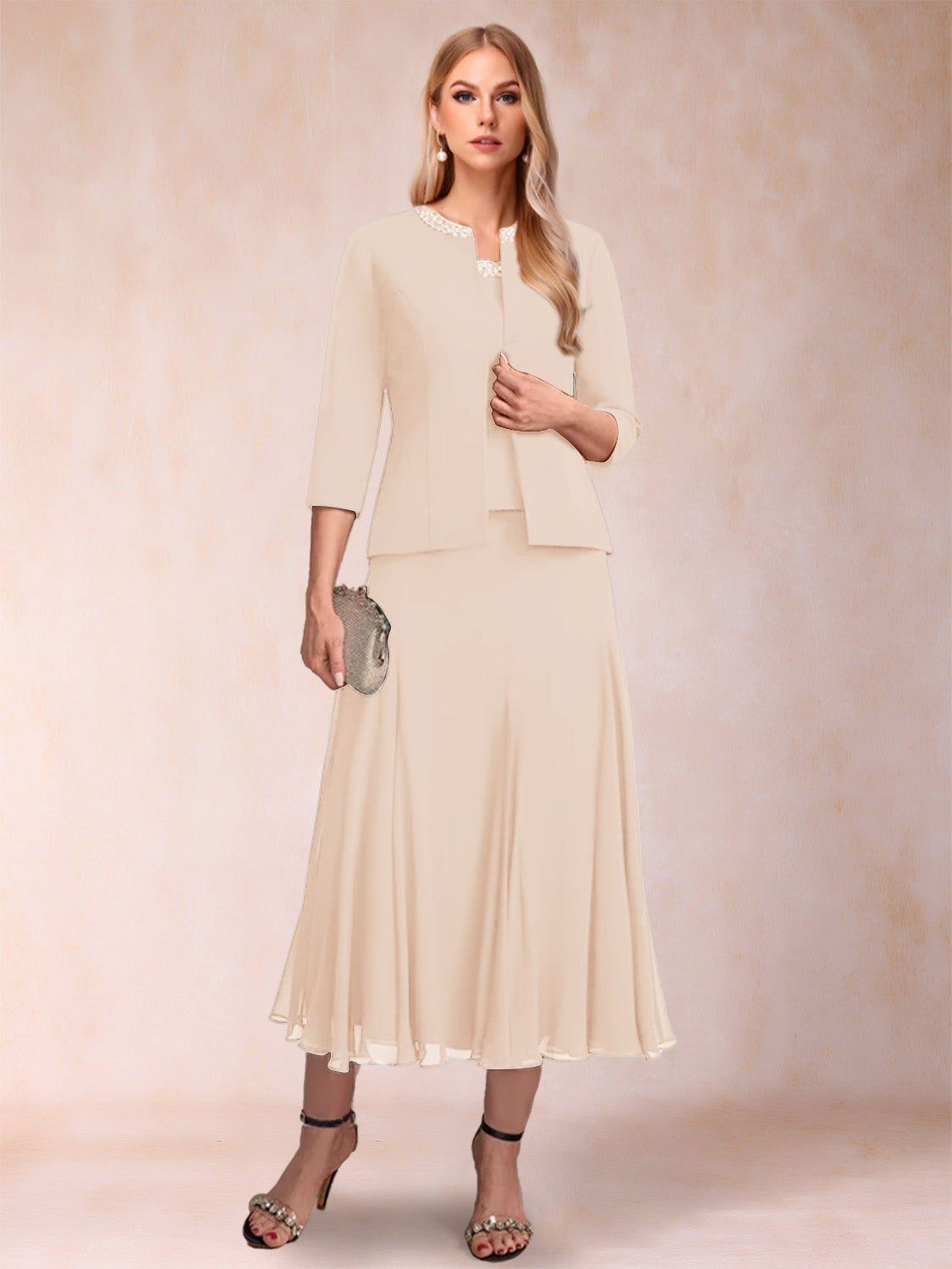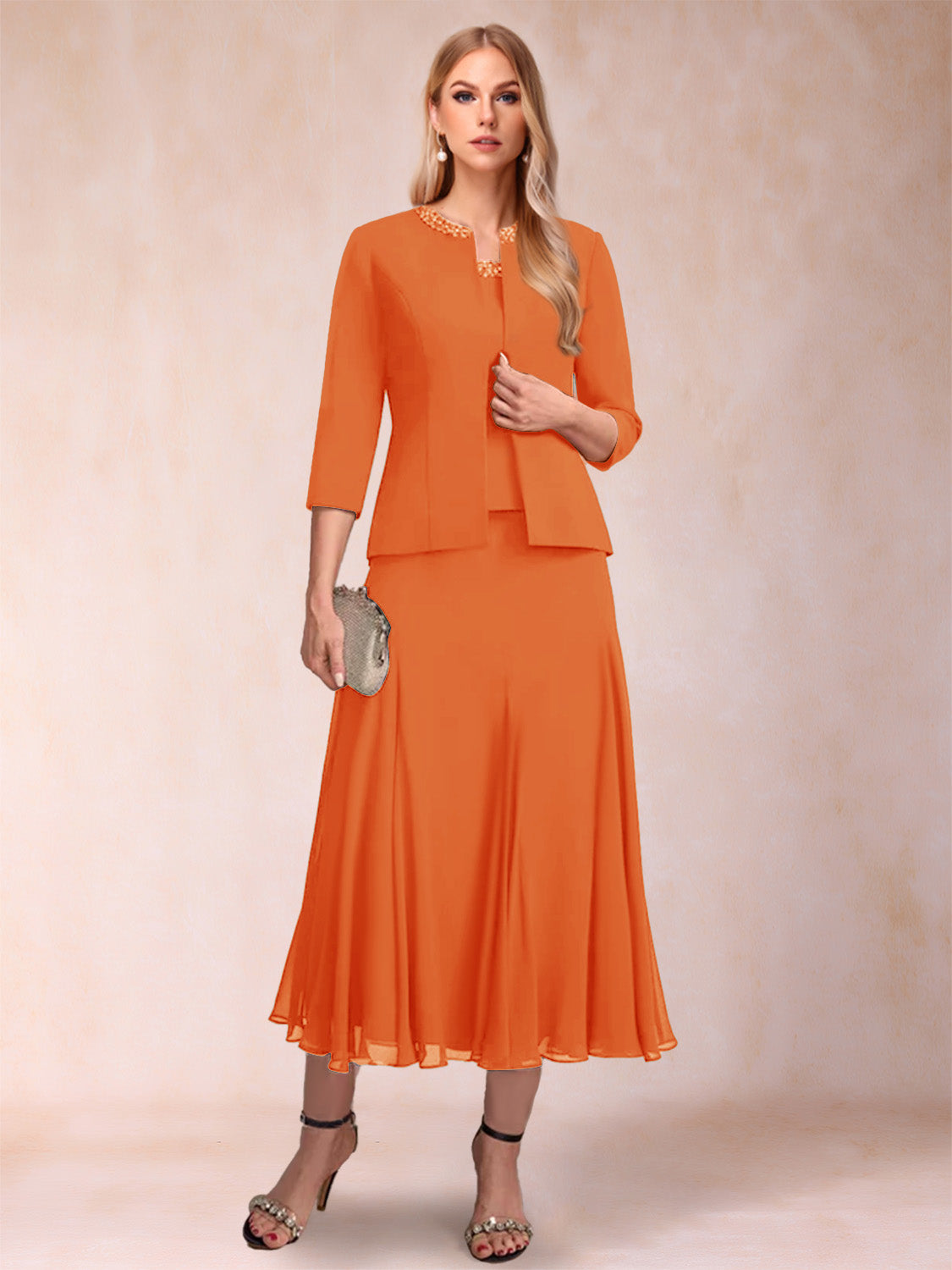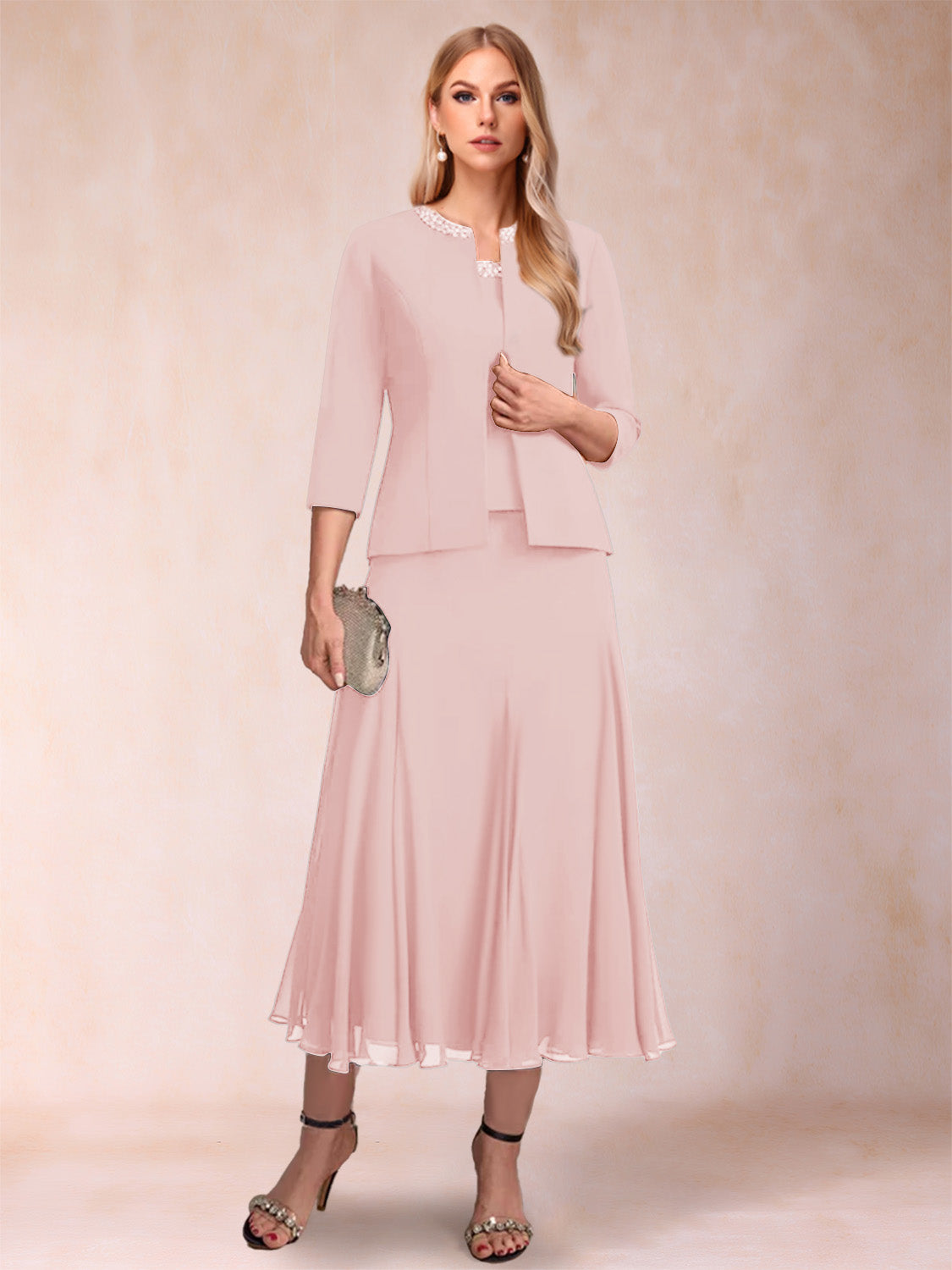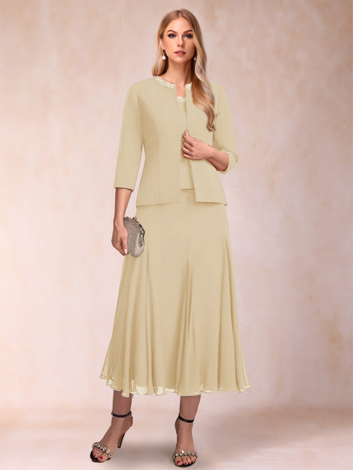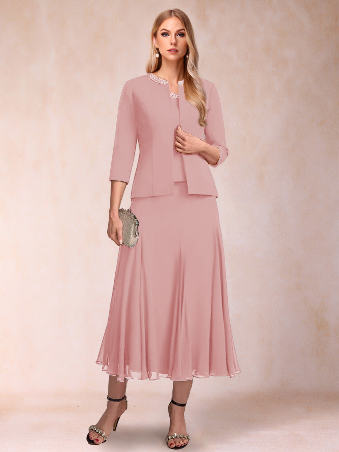 • A-Line/Princess Scoop 3/4 Sleeves 2 Pieces Mother of the Bride Dresses with Sequins